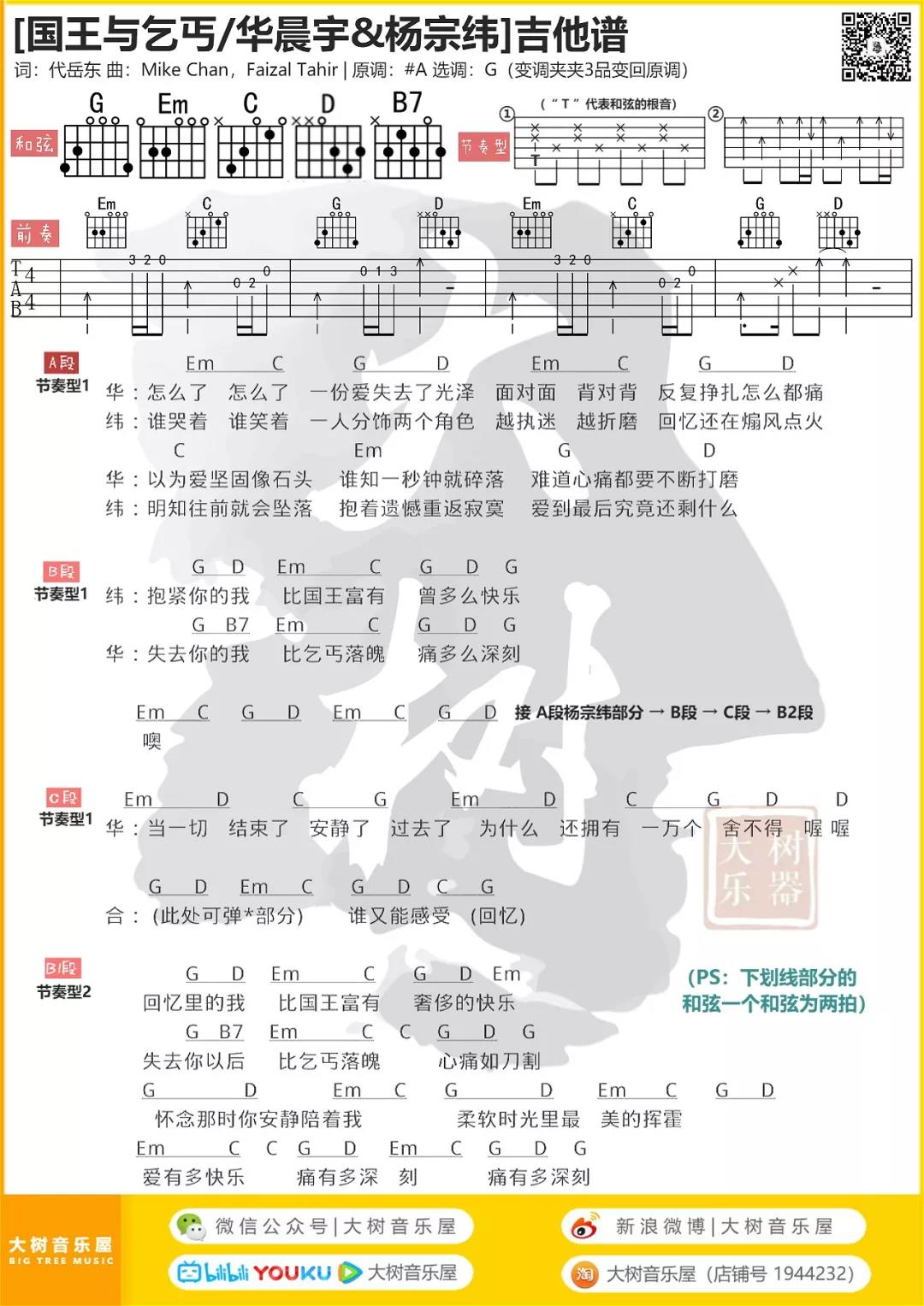 国王与乞丐吉他谱 - 华晨宇,杨宗纬 - G调吉他弹唱谱
