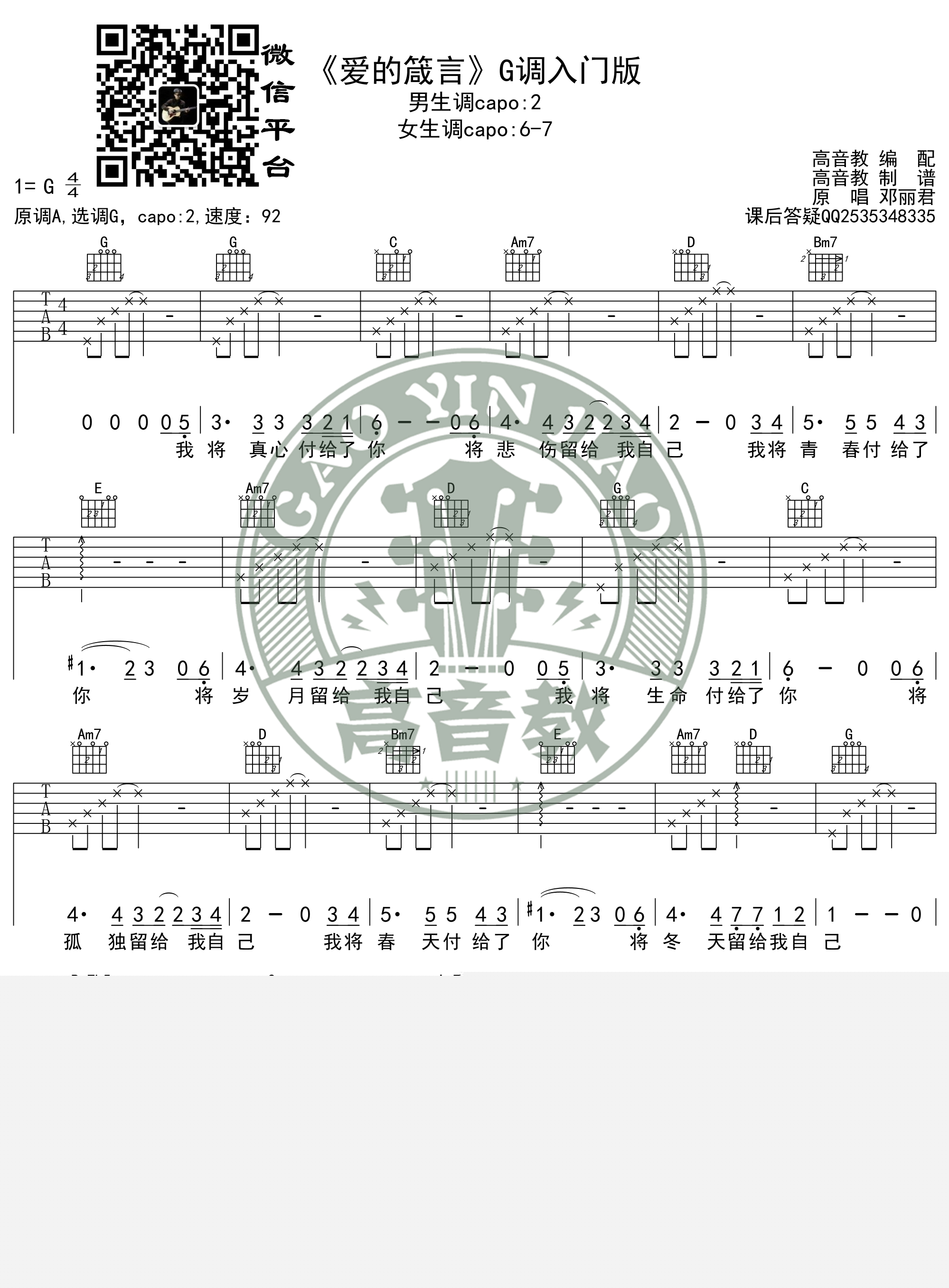 爱的箴言吉他谱 - 邓丽君 - G调吉他弹唱谱