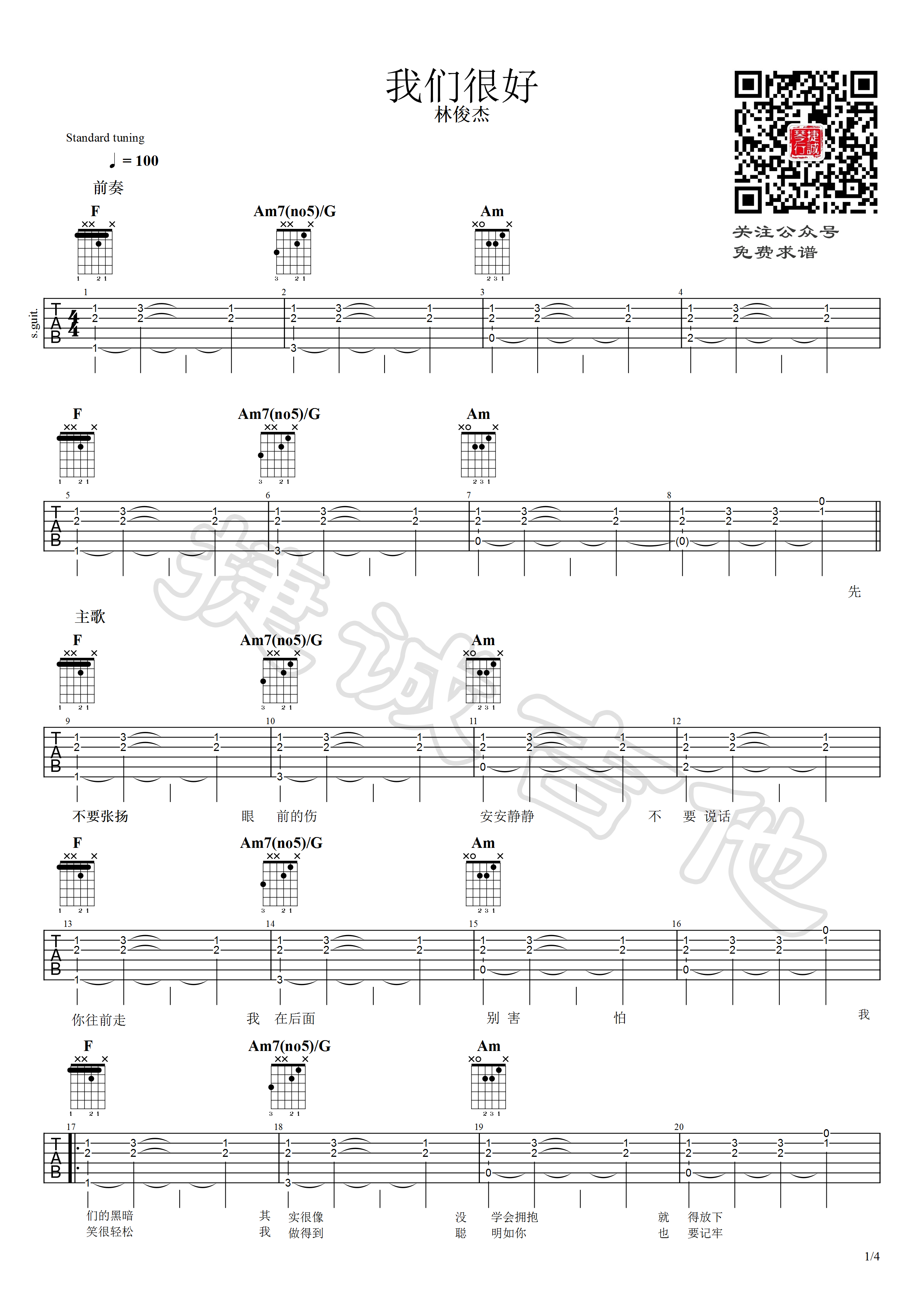 我们很好吉他谱 - 林俊杰 - F调吉他弹唱谱
