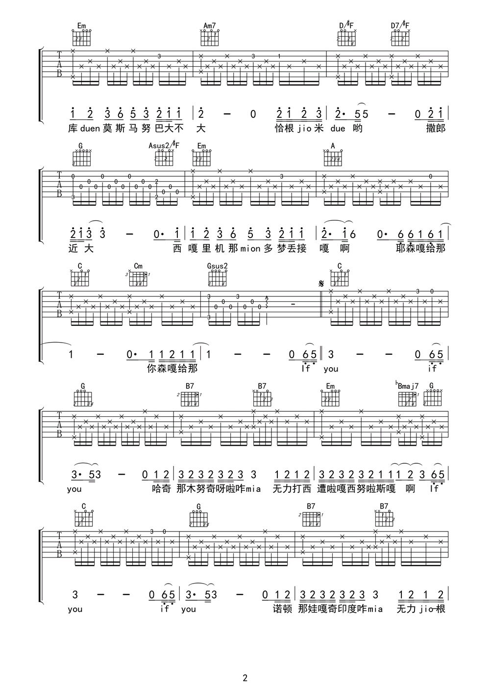 曲谱介绍: Bigbang《ifyou》吉他弹唱谱,采用G调指法编配,共有3张高清图谱。