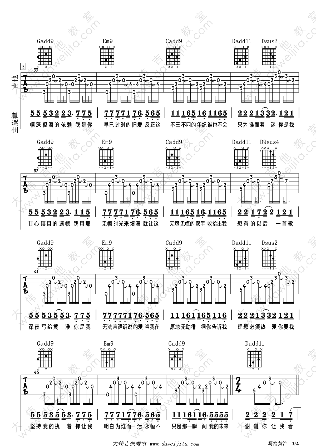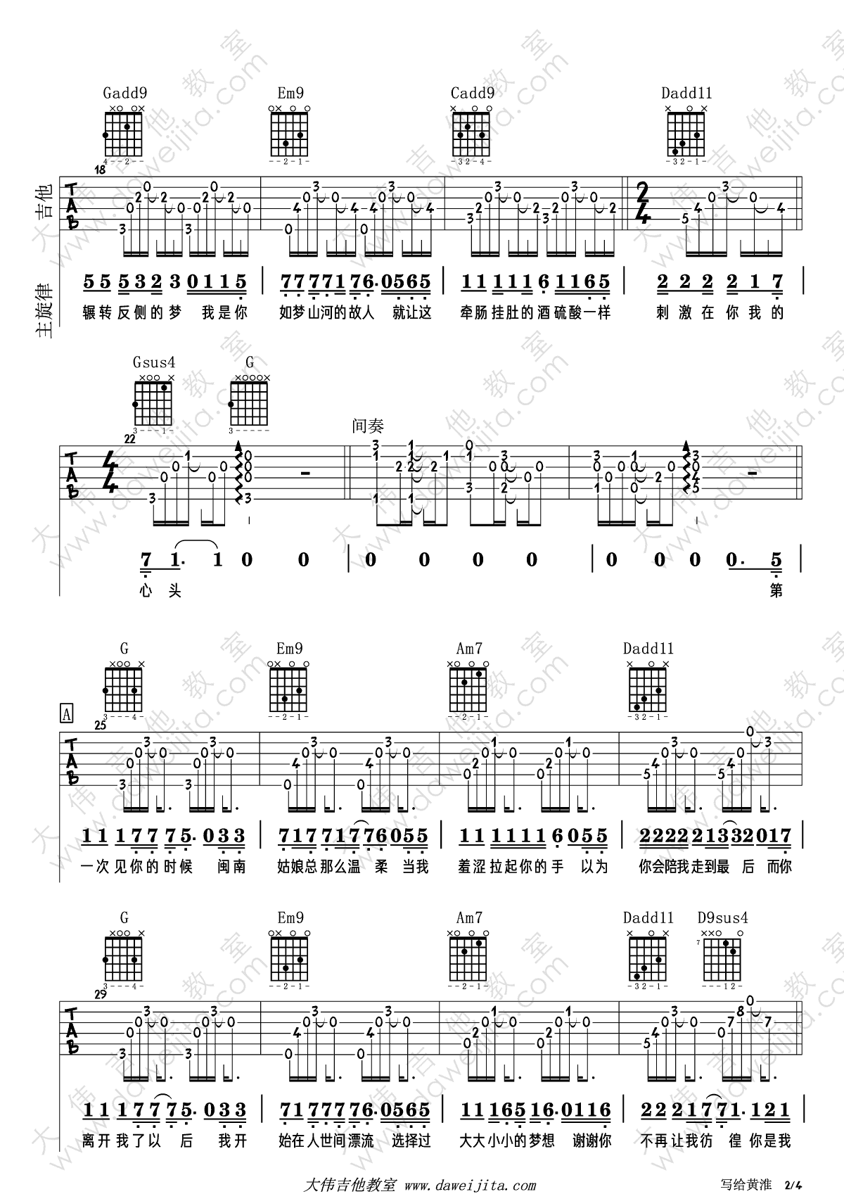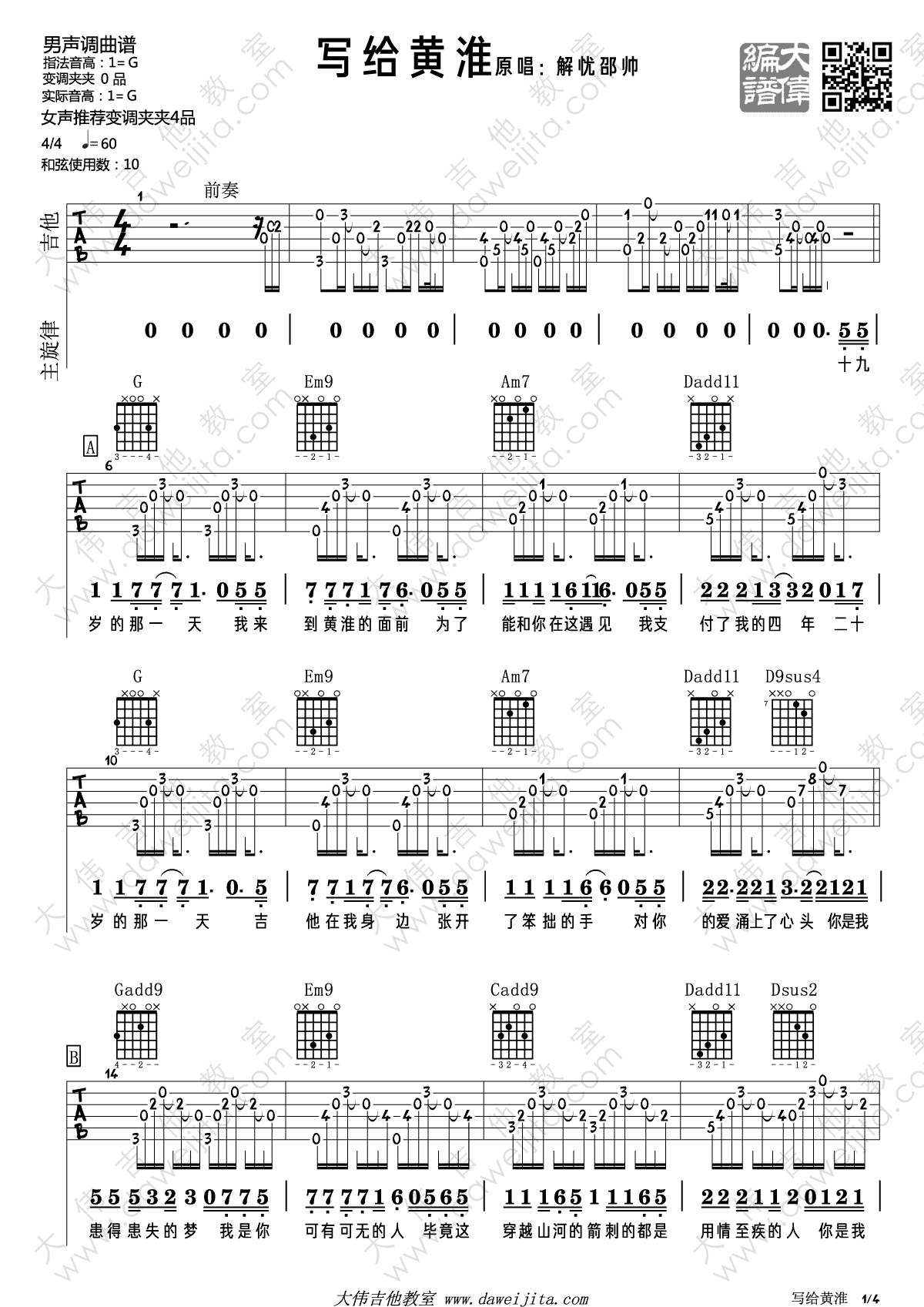当前位置:琴谱网>吉他弹唱>写给黄淮