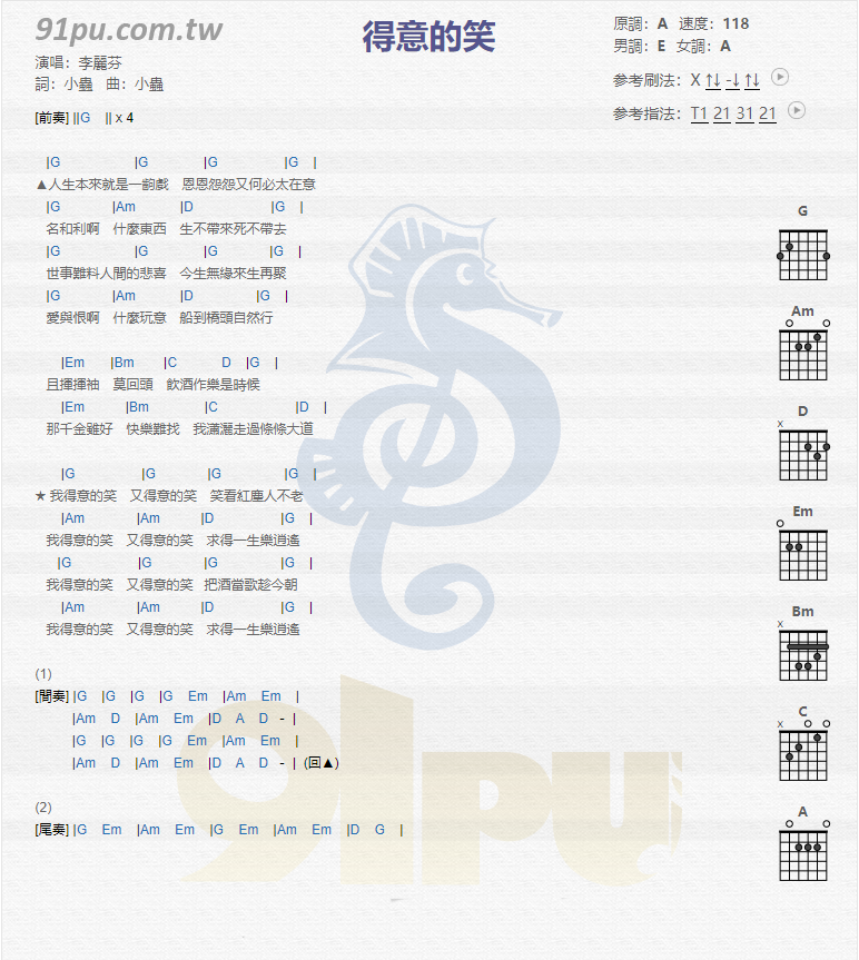 当前位置:琴谱网>吉他弹唱>得意的笑