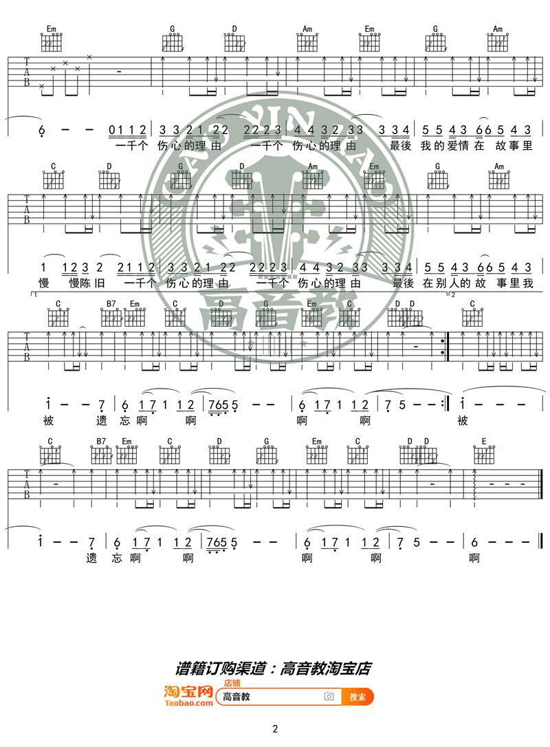 当前位置:琴谱网>吉他弹唱>一千个伤心的理由