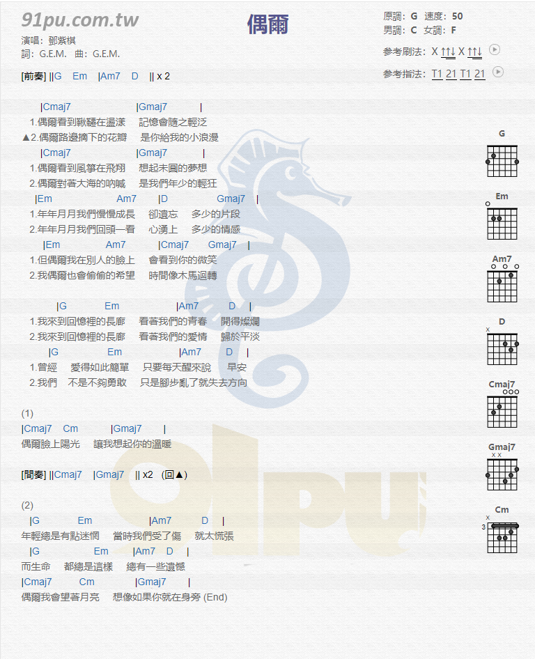 偶尔吉他谱 - 邓紫棋 - G调吉他弹唱谱