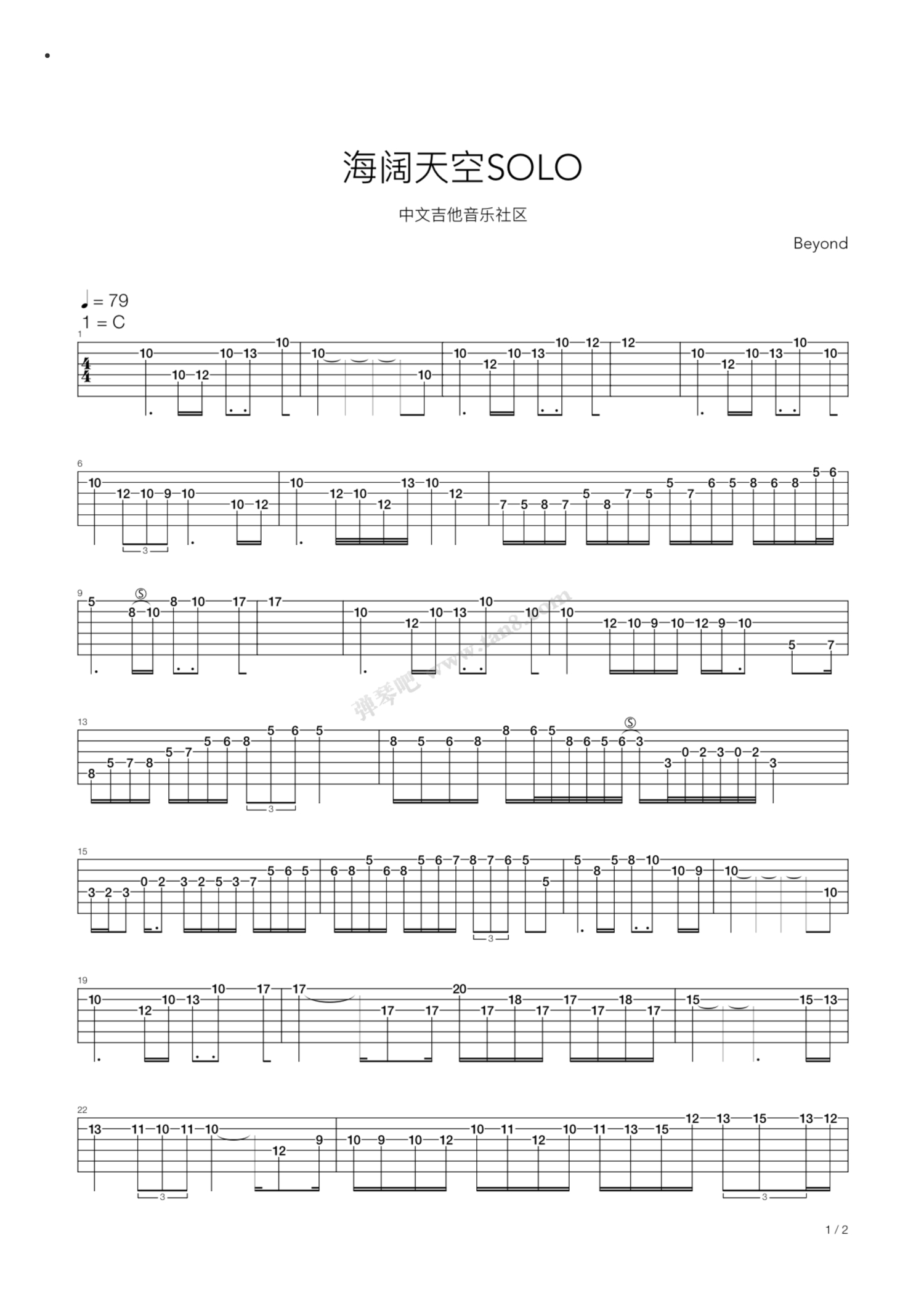 曲谱介绍: Beyond《海阔天空》吉他谱_电吉他谱