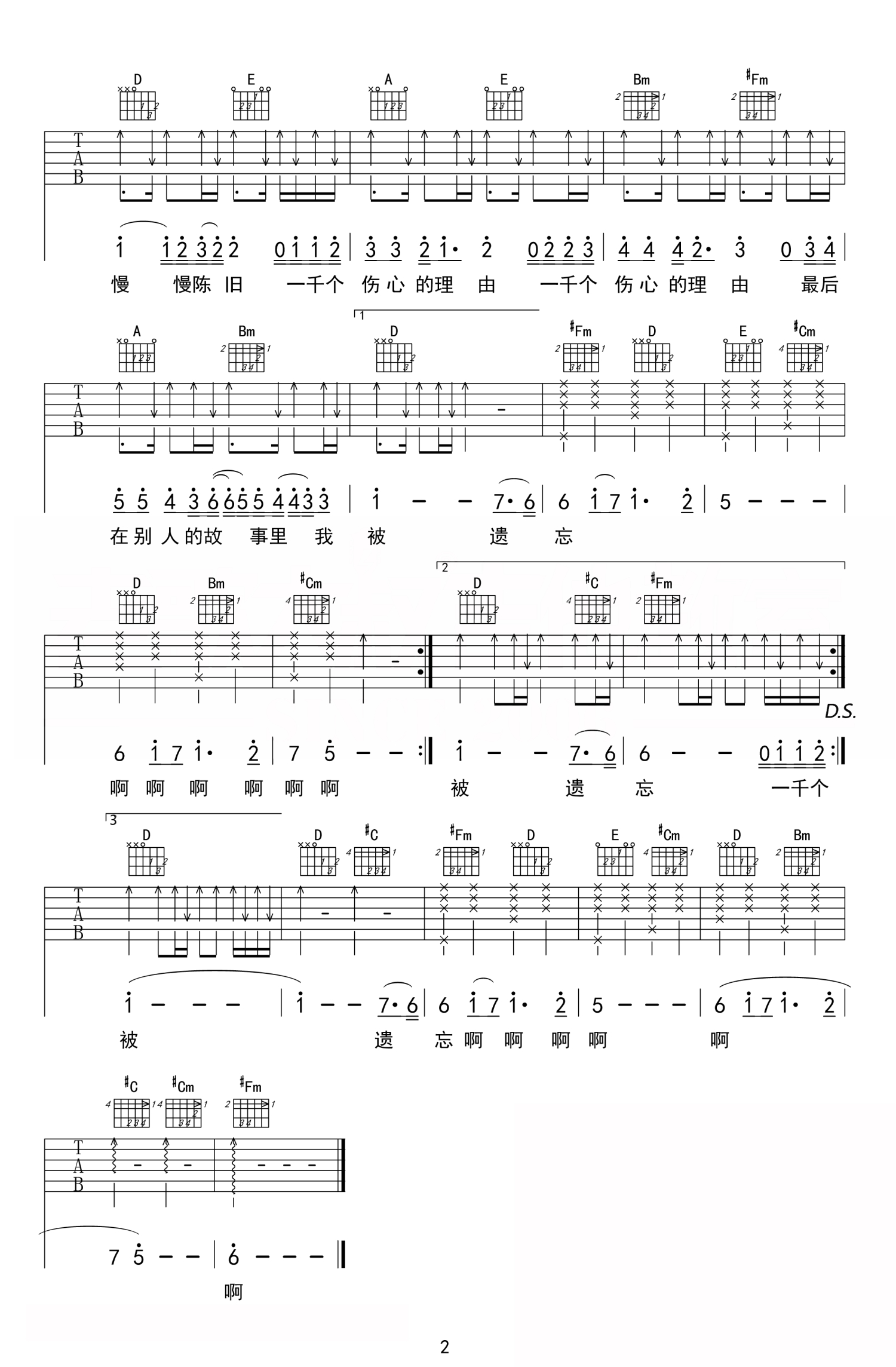 一千个伤心的理由吉他谱 - 张学友 - A调吉他弹唱谱