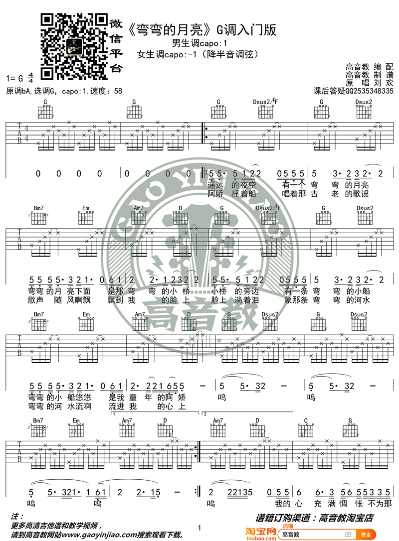 当前位置:琴谱网>吉他弹唱>弯弯的月亮