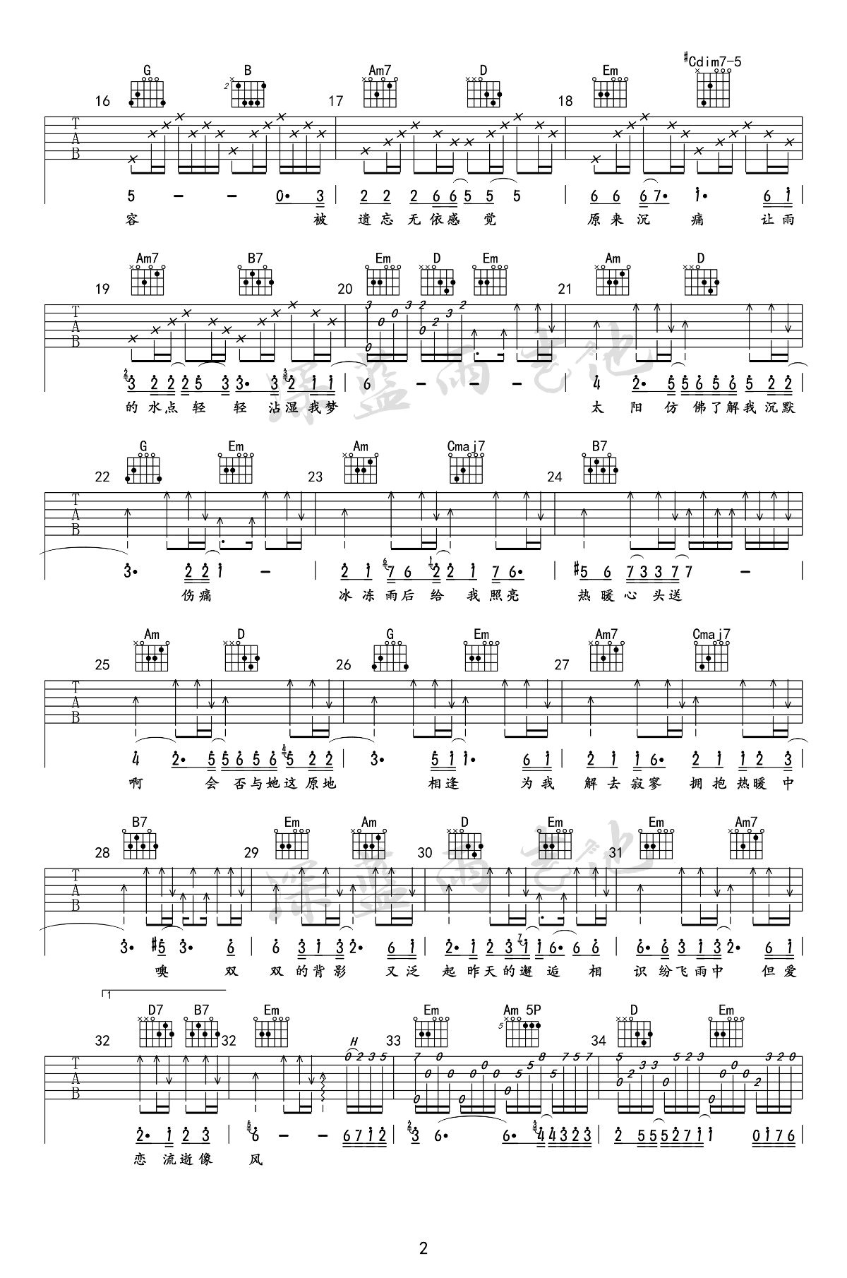 当前位置:琴谱网>吉他弹唱>雨中的恋人们
