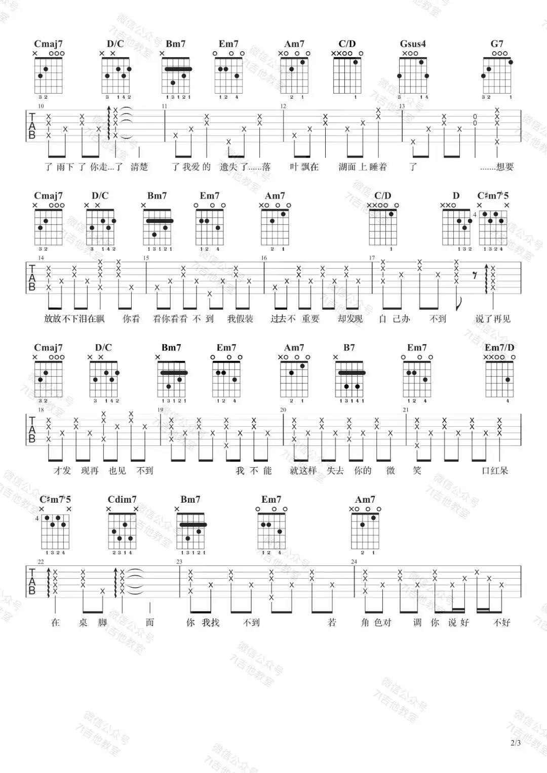 曲谱介绍: 周杰伦《说了再见》吉他弹唱谱,采用G调指法编配,共有3张高清图谱。