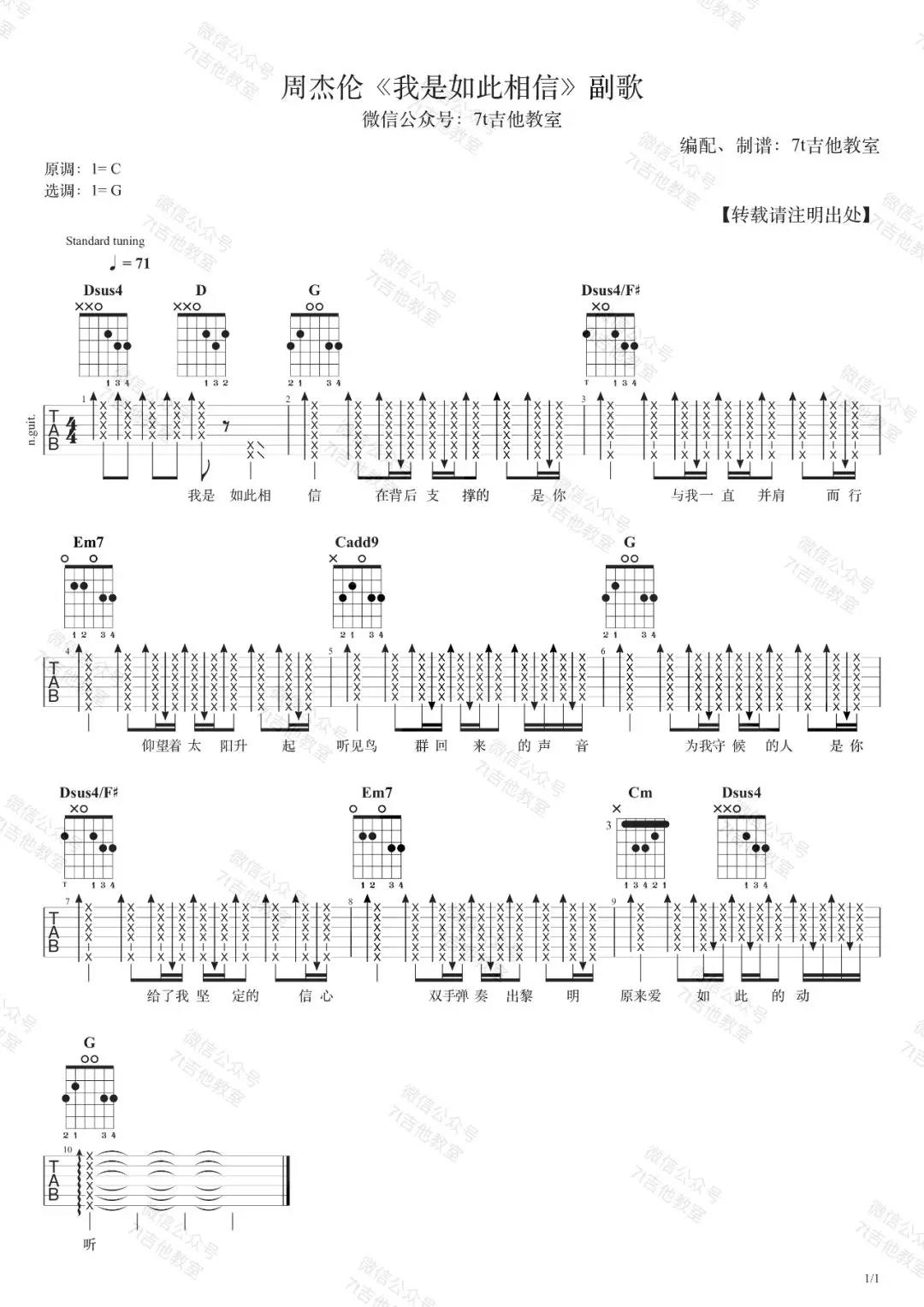 你是如此相信吉他谱 - 周杰伦 - G调吉他弹唱谱