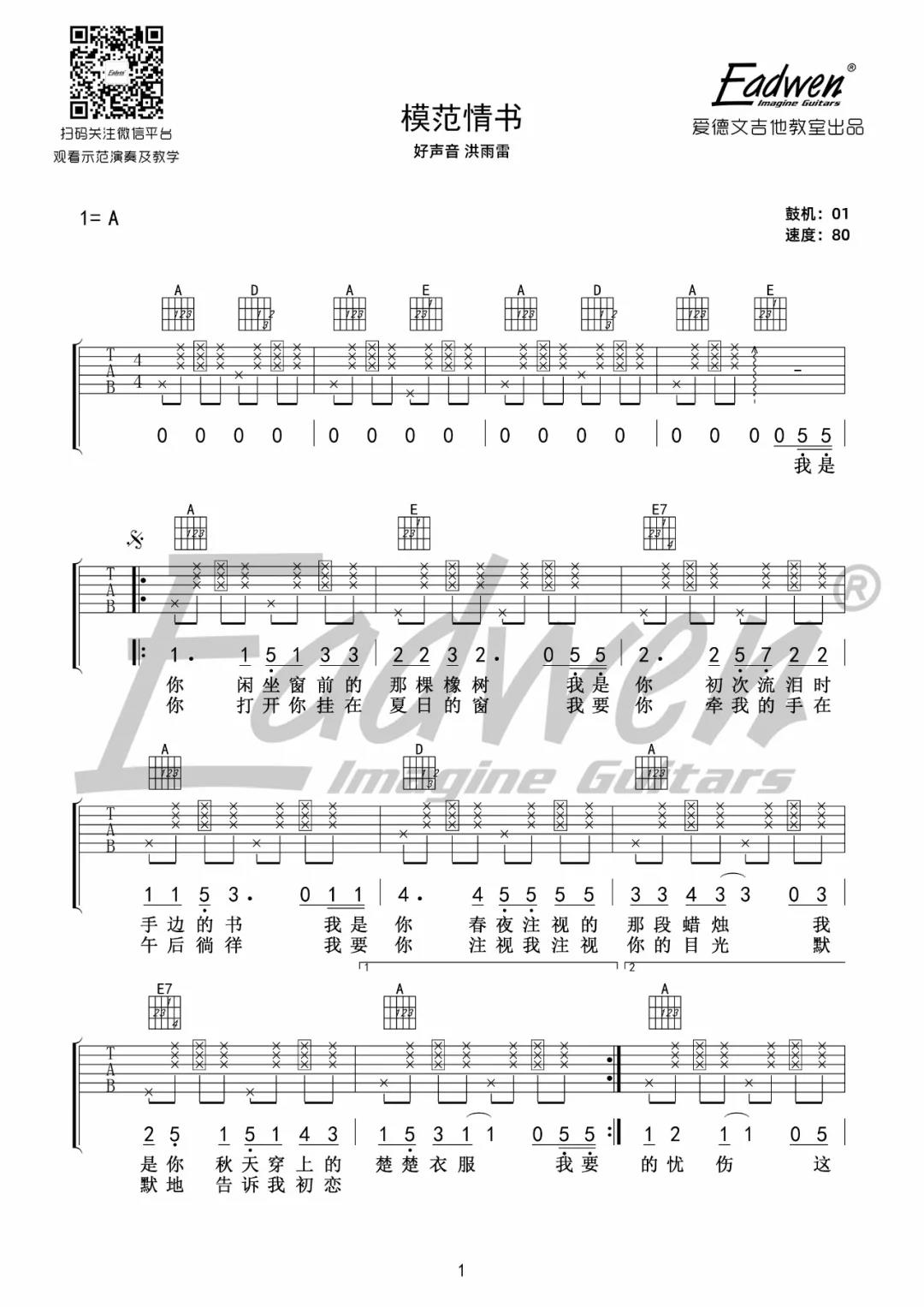 模范情书吉他谱 - 洪雨雷 - A调吉他弹唱谱