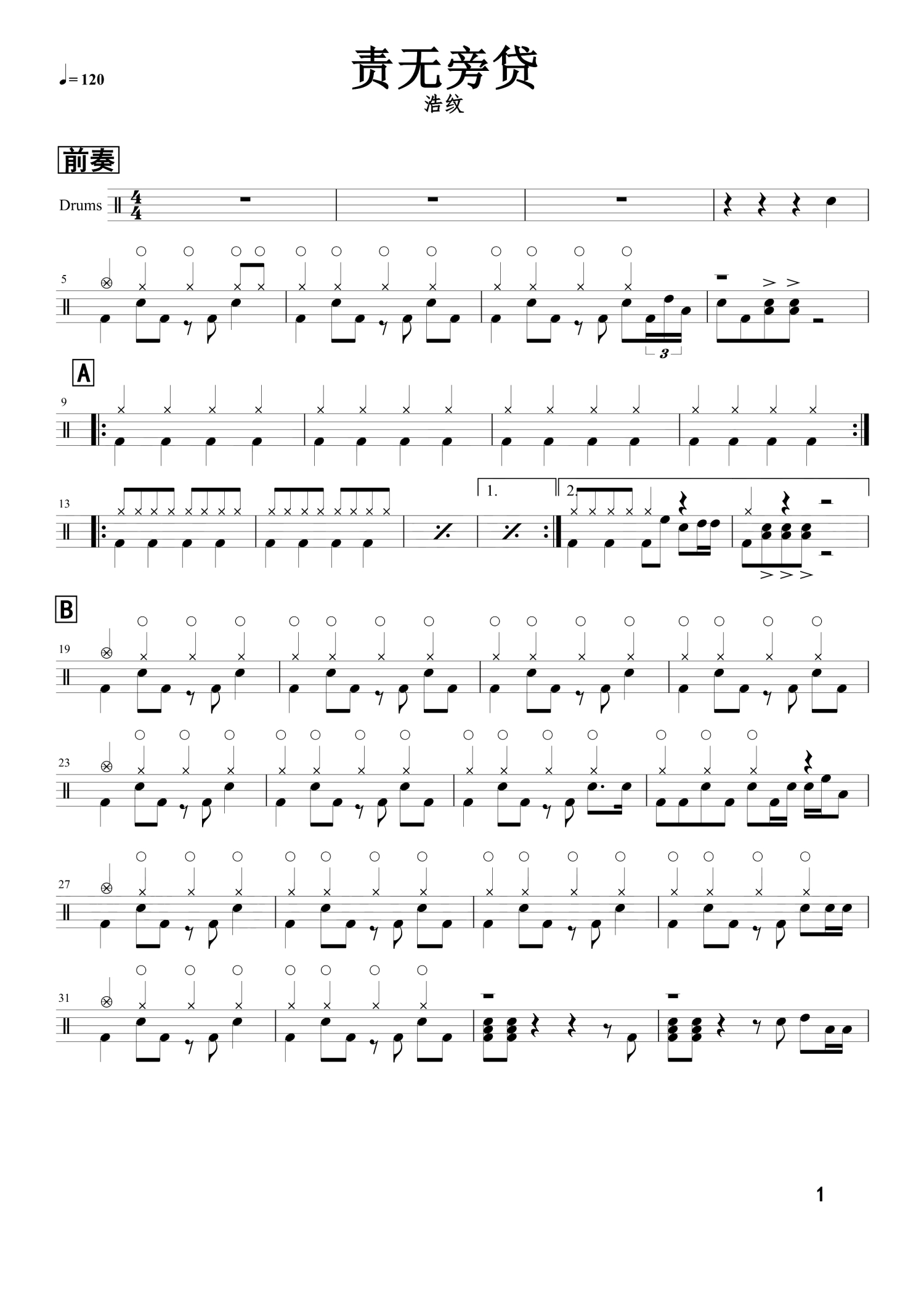 责无旁贷鼓谱 - 浩纹 - 架子鼓谱