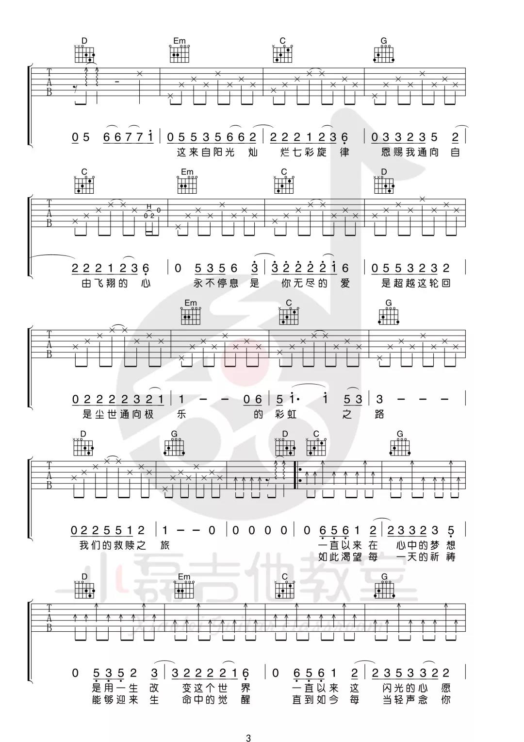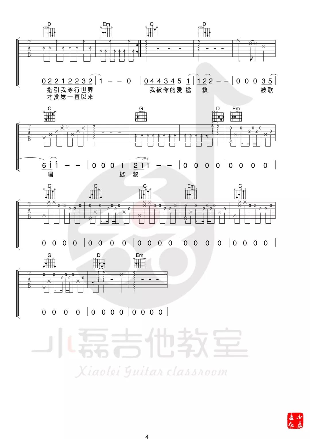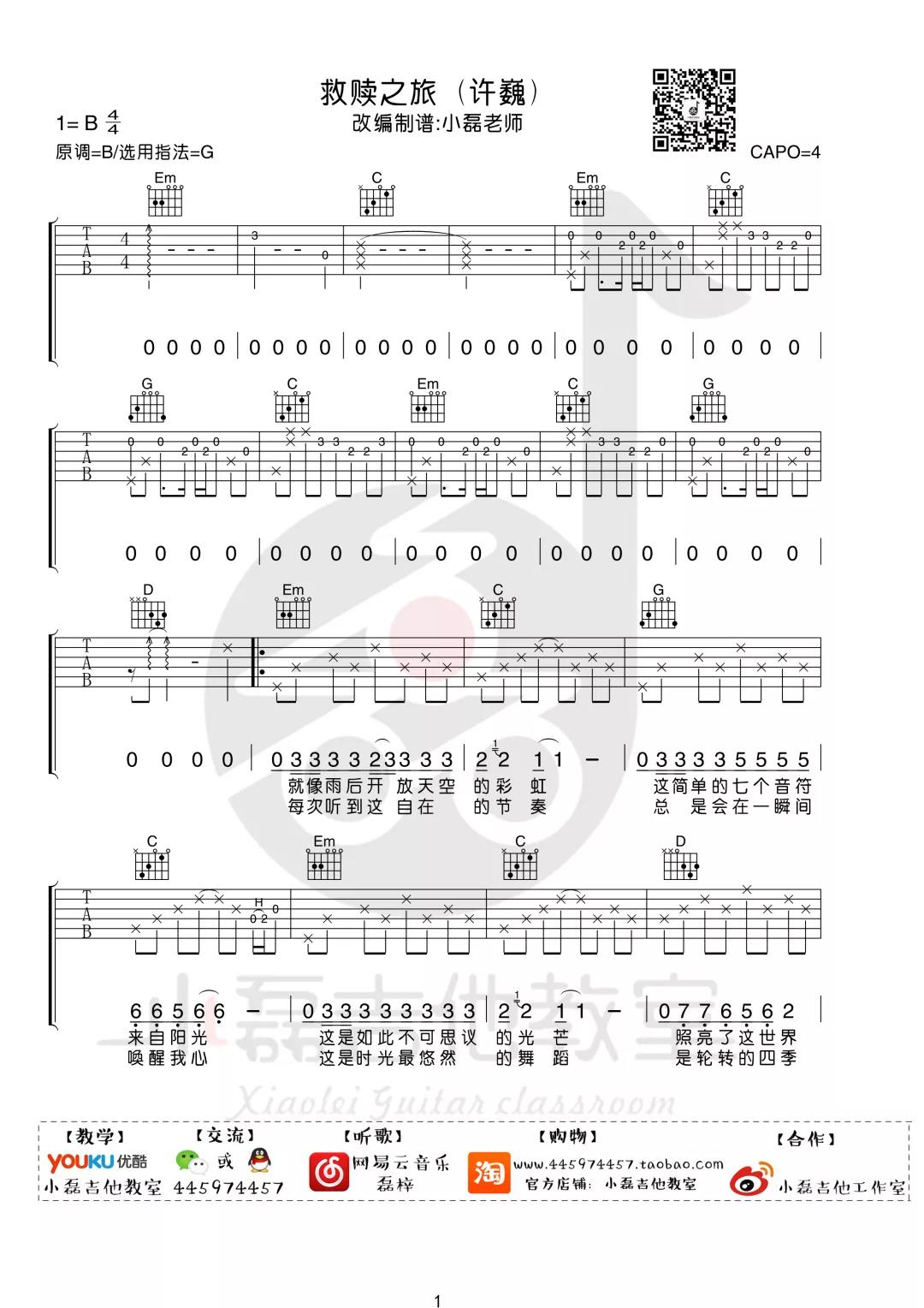 曲谱介绍: 许巍《救赎之旅》吉他弹唱谱,采用G调指法编配,共有4张高清图谱。