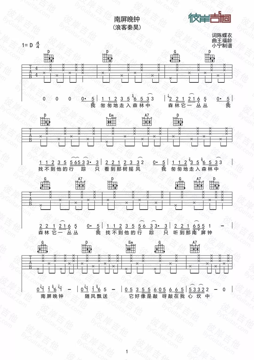 南屏晚钟吉他谱 - 好妹妹乐队 - D调吉他弹唱谱