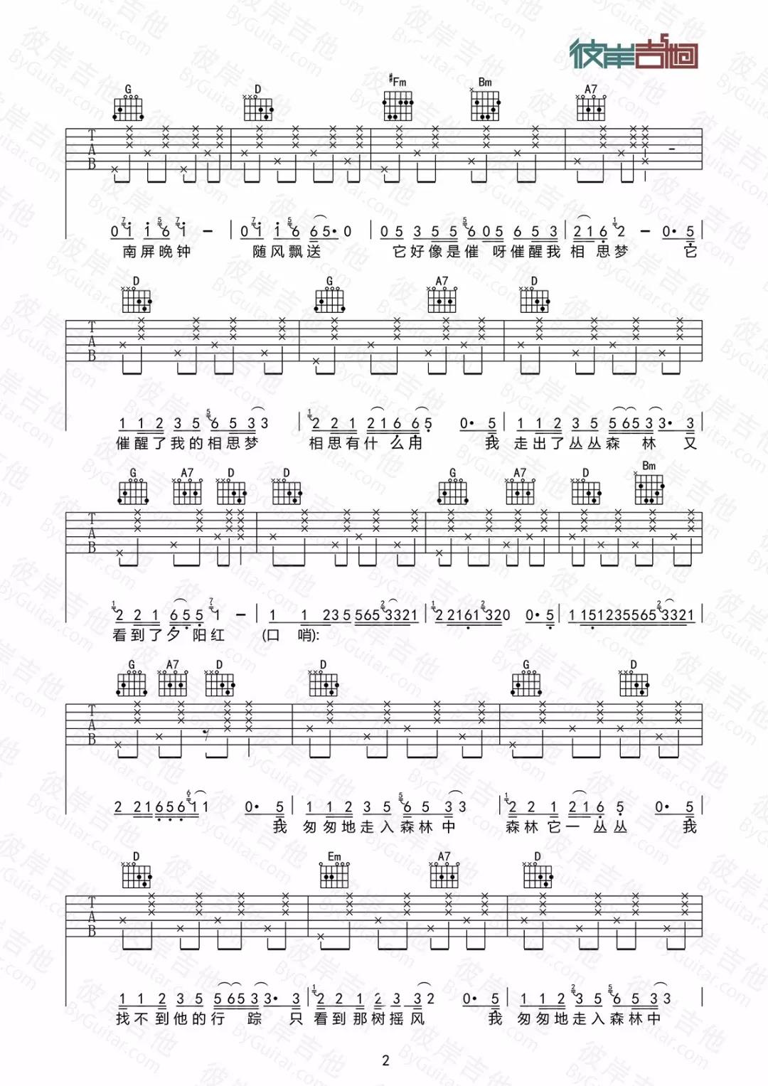 曲谱介绍: 好妹妹乐队《南屏晚钟》吉他弹唱谱,采用D调指法编配,共有6张高清图谱。