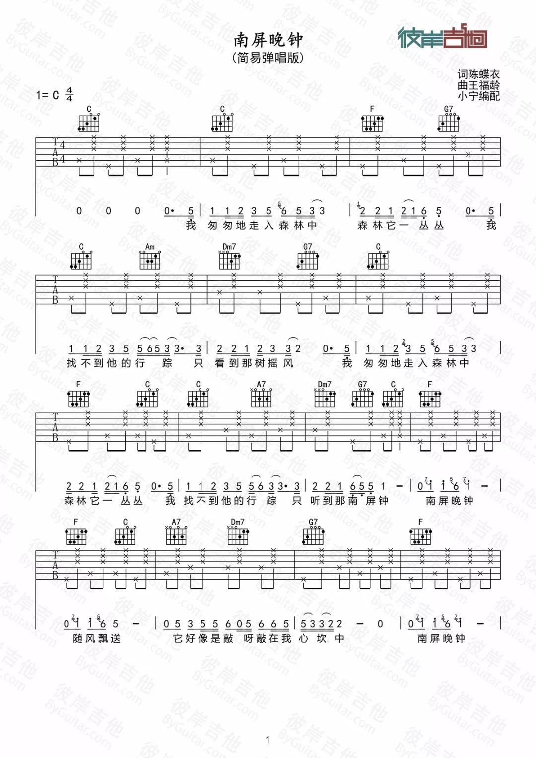 当前位置:琴谱网>吉他弹唱>南屏晚钟