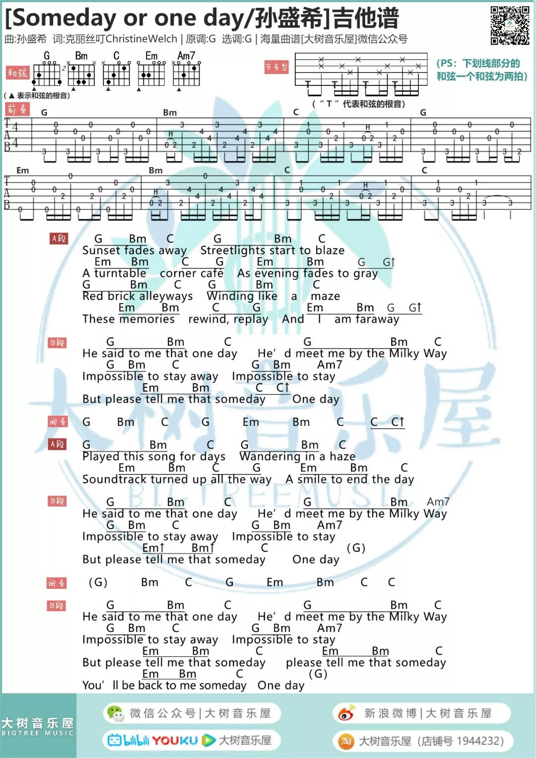 Someday or One Day吉他谱 - 孙盛希 - G调吉他弹唱谱