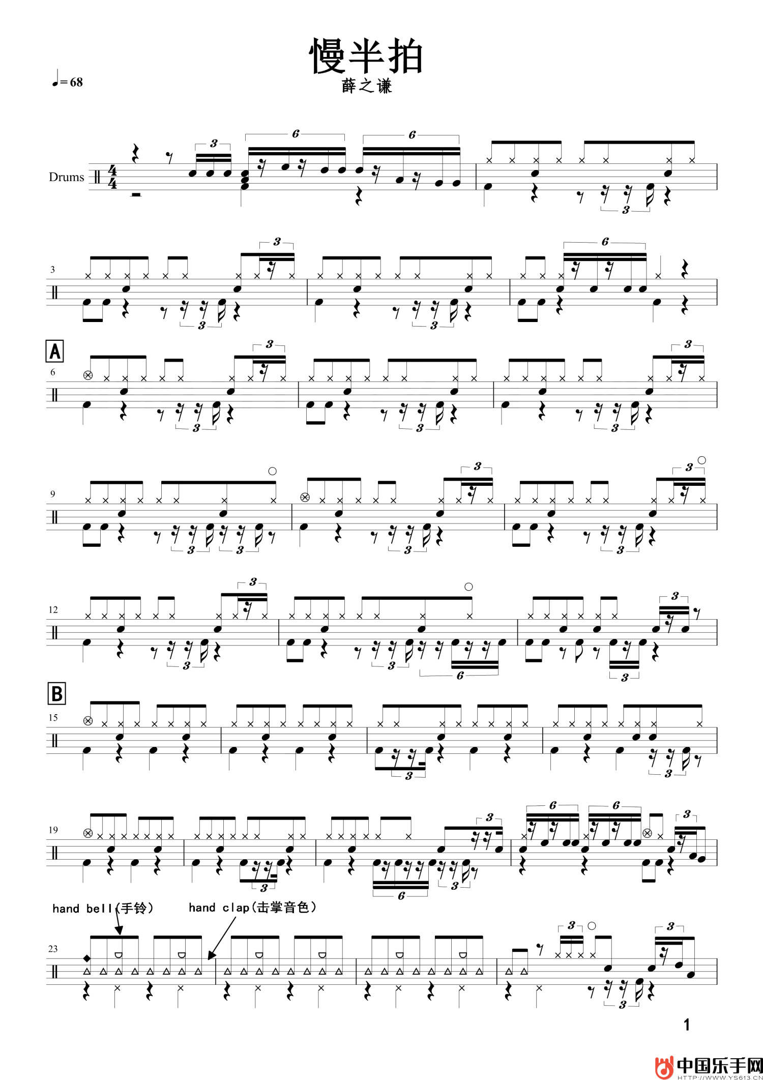 慢半拍鼓谱 - 薛之谦 - 架子鼓谱
