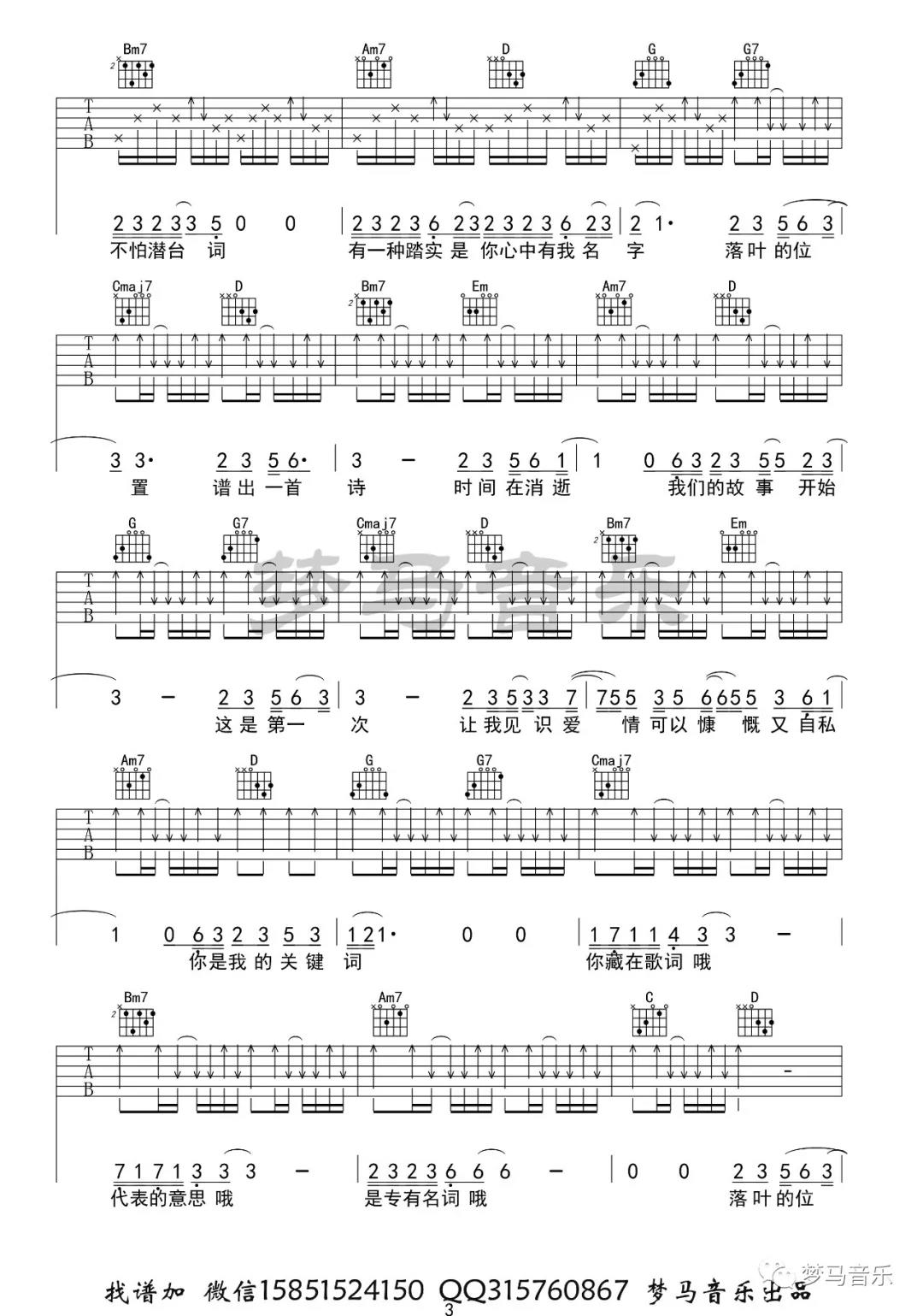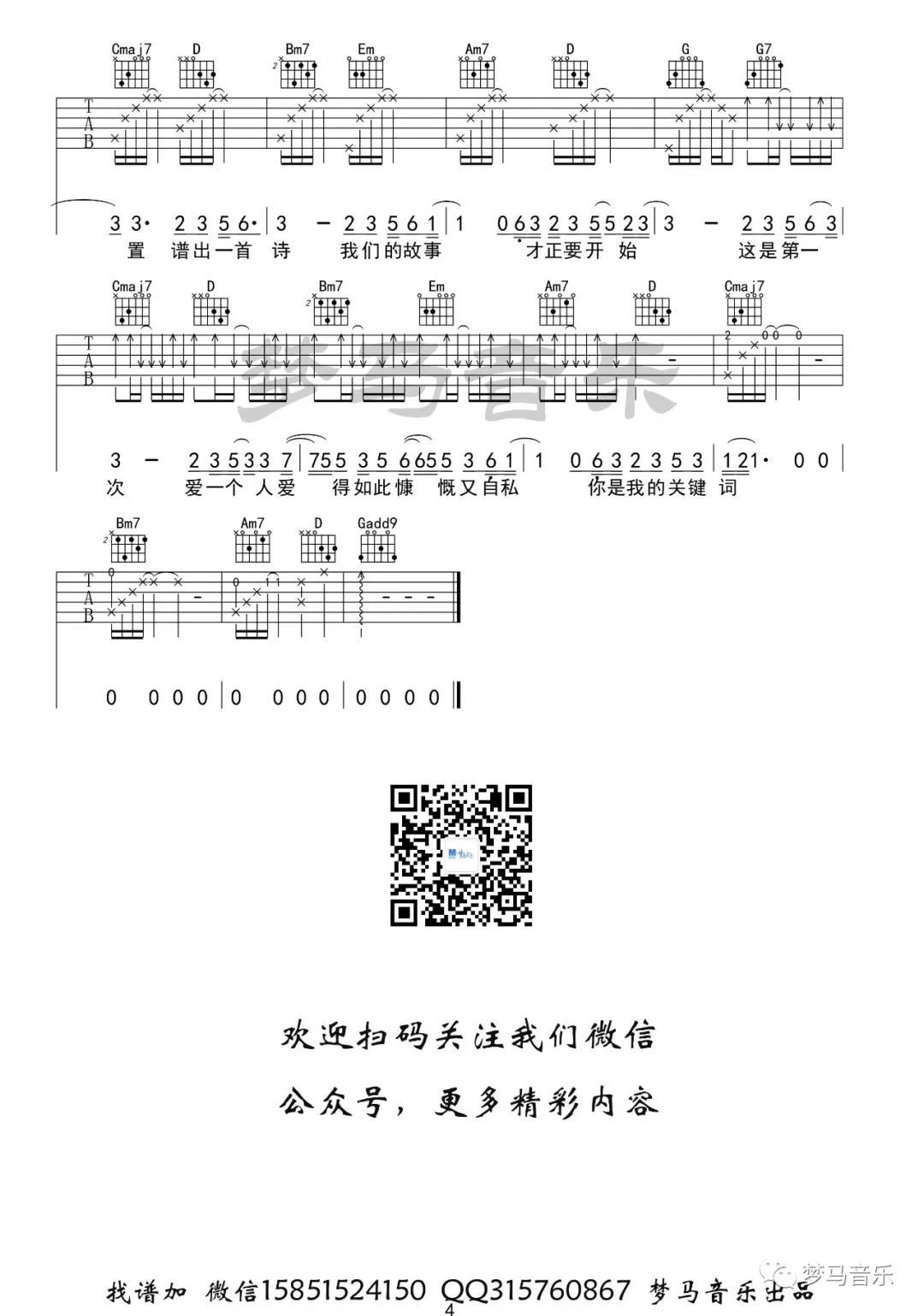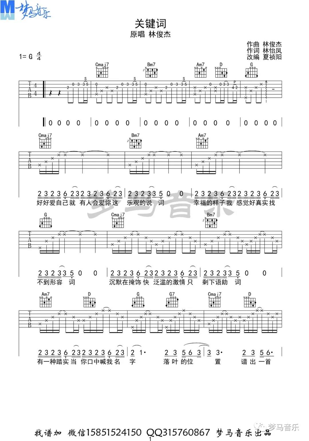 曲谱介绍: 林俊杰《关键词》吉他弹唱谱,采用G调指法编配,共有4张高清图谱。