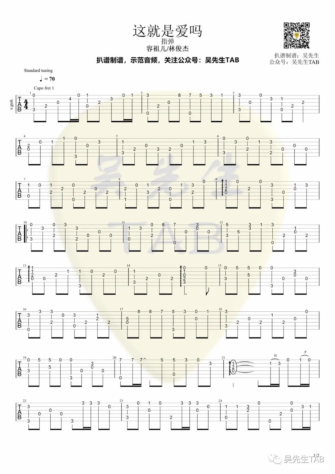 曲谱介绍: 容祖儿《这就是爱吗》吉他独奏谱,采用C调指法编配,共有2张高清图谱,免翻页排版设计。