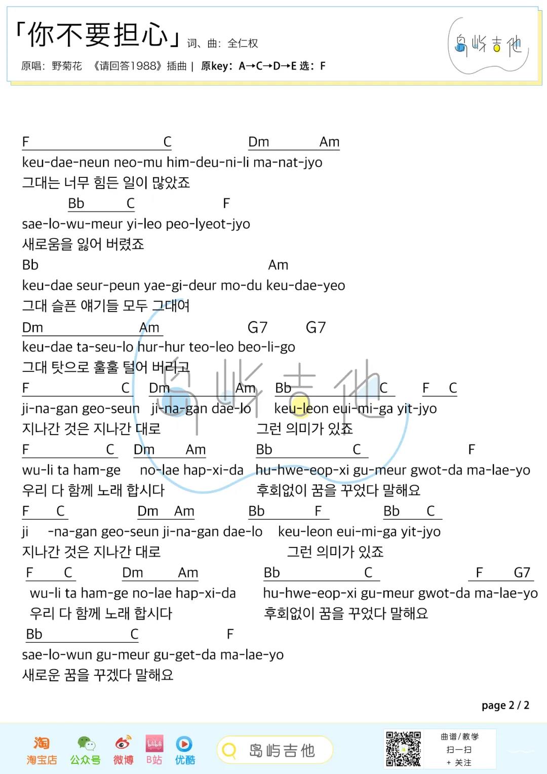 你不要担心吉他谱 - 野菊花 - F调吉他弹唱谱
