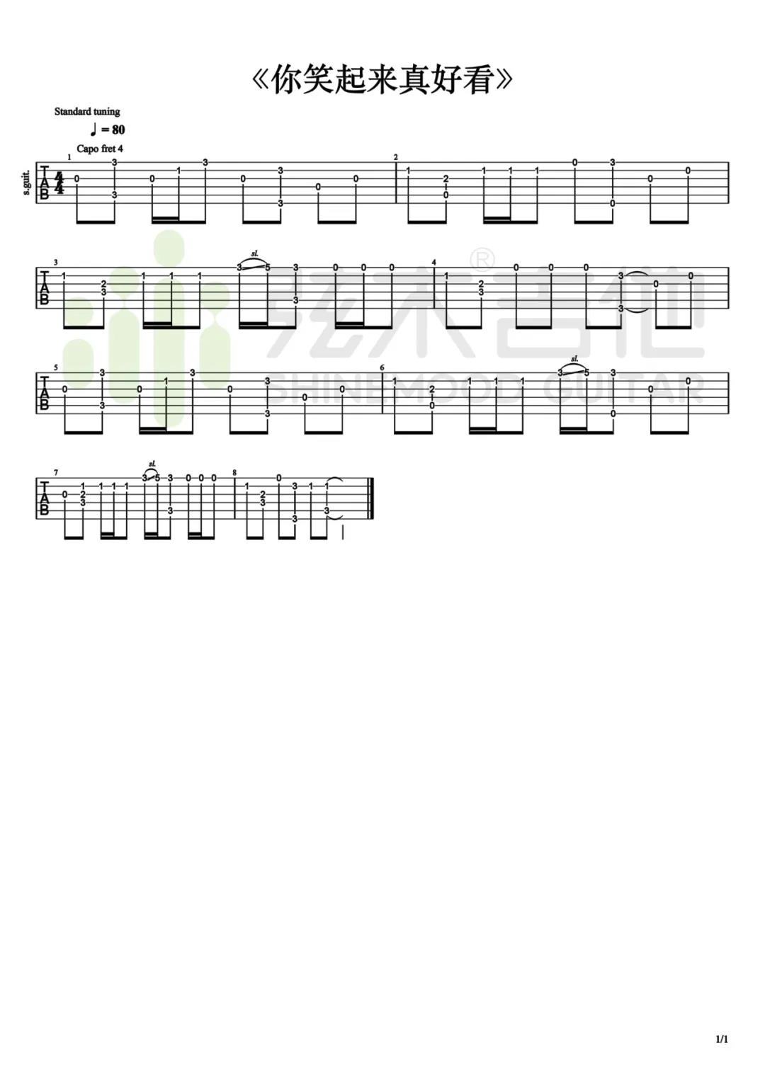 当前位置:琴谱网>吉他独奏>你笑起来真好看
