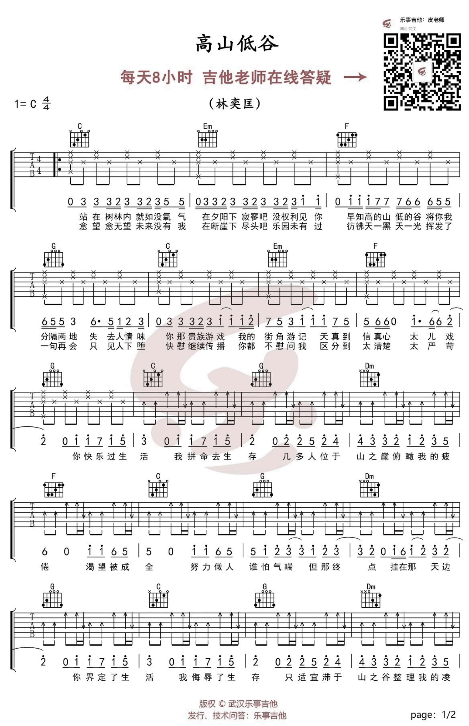 高山低谷吉他谱 - 林奕匡 - C调吉他弹唱谱