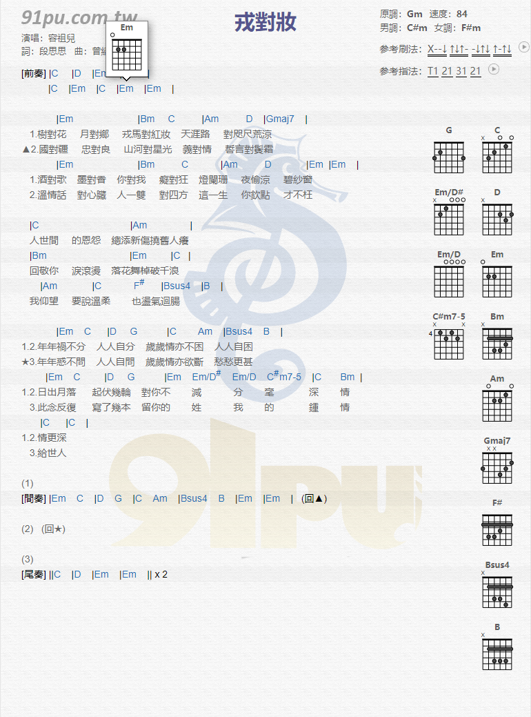 当前位置:琴谱网>吉他弹唱>戎对妆