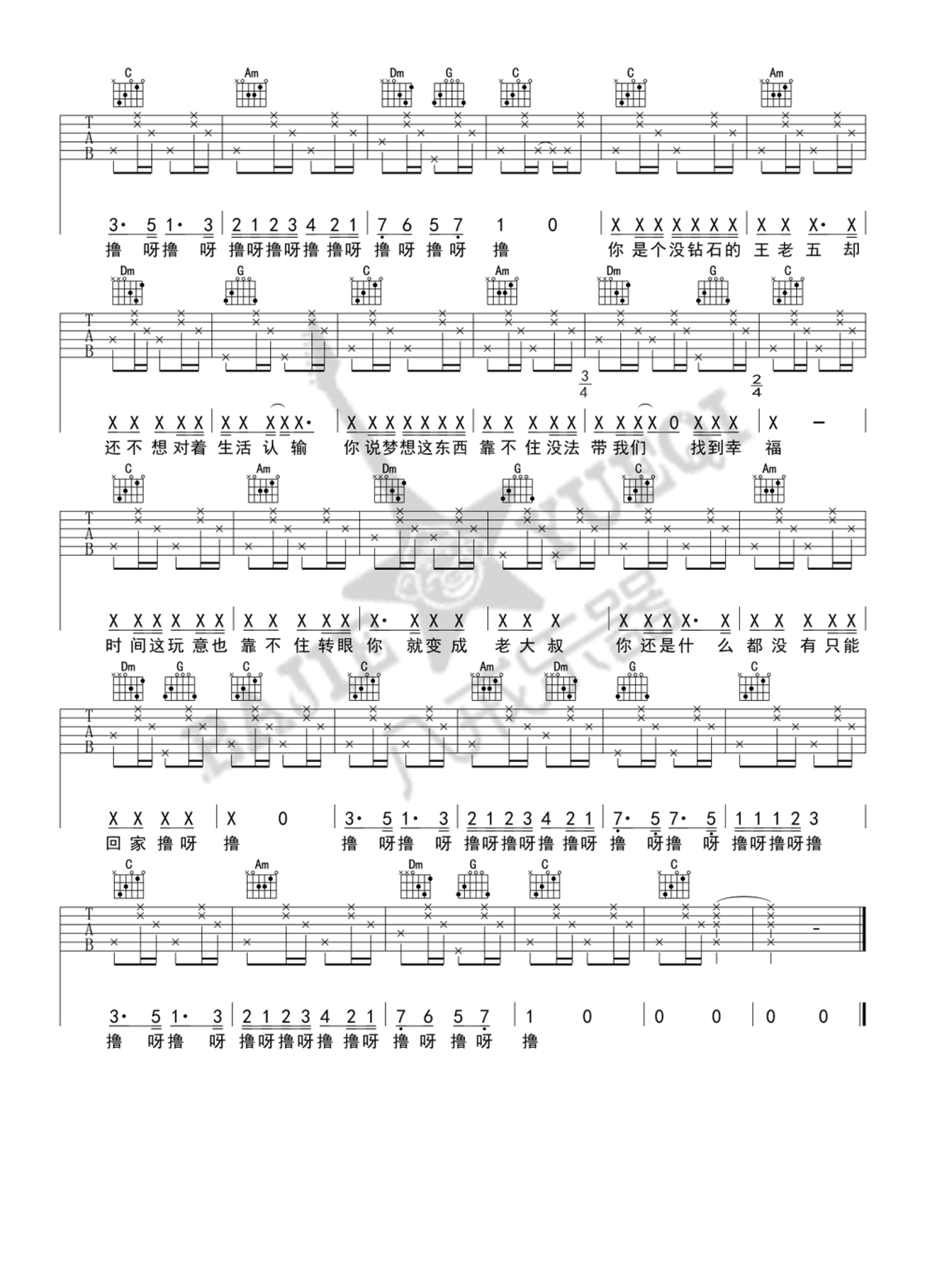 当前位置:琴谱网>吉他弹唱>屌丝之歌