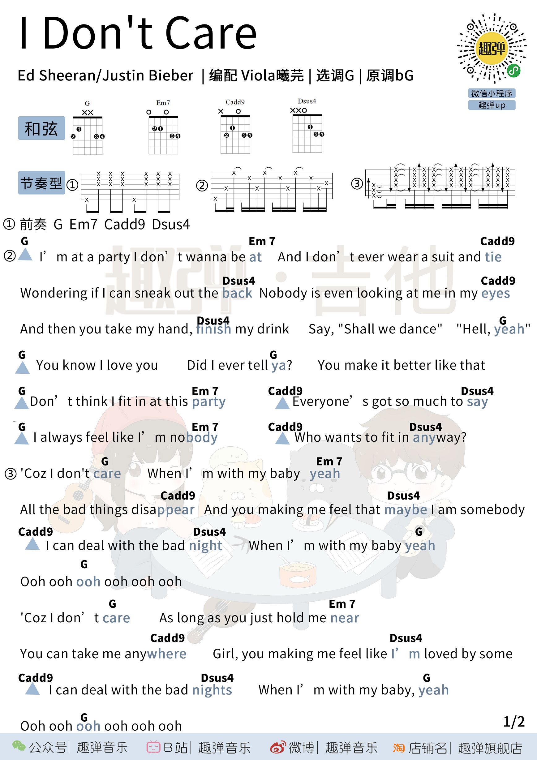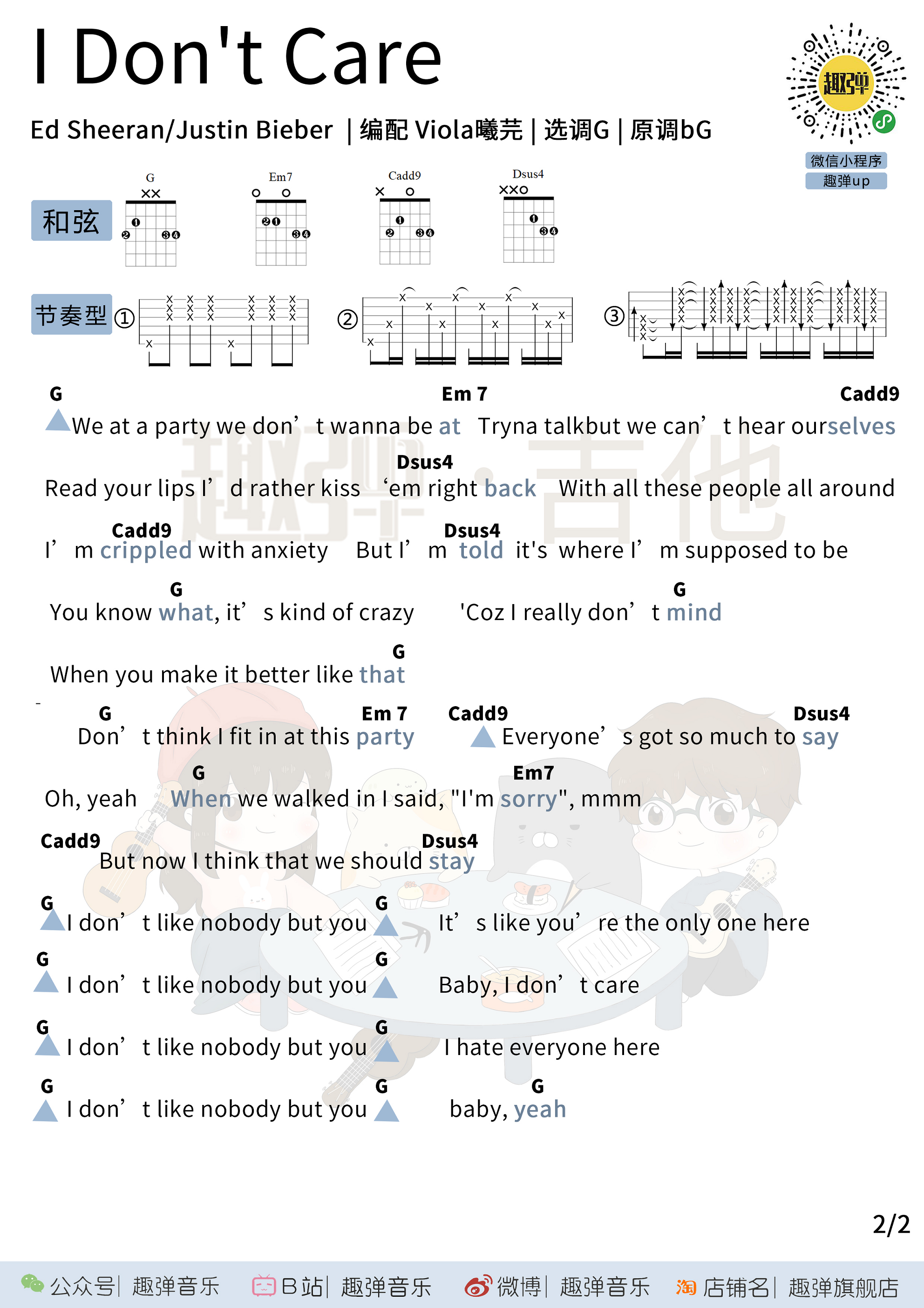 I Dont Care吉他谱 - Ed,Sheeran,Justin,Bieber - G调吉他弹唱谱