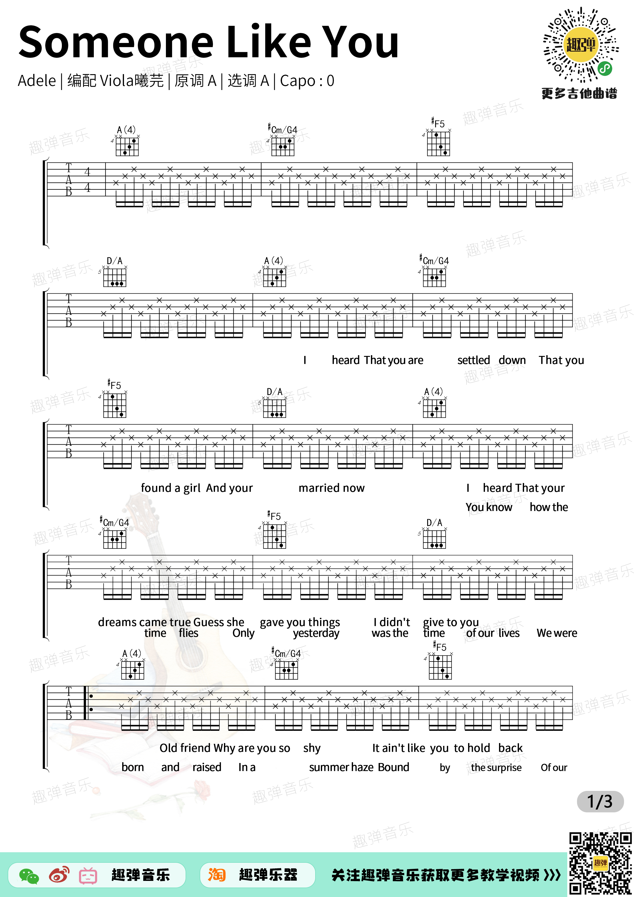 Someone Like You吉他谱 - adele - A调吉他弹唱谱