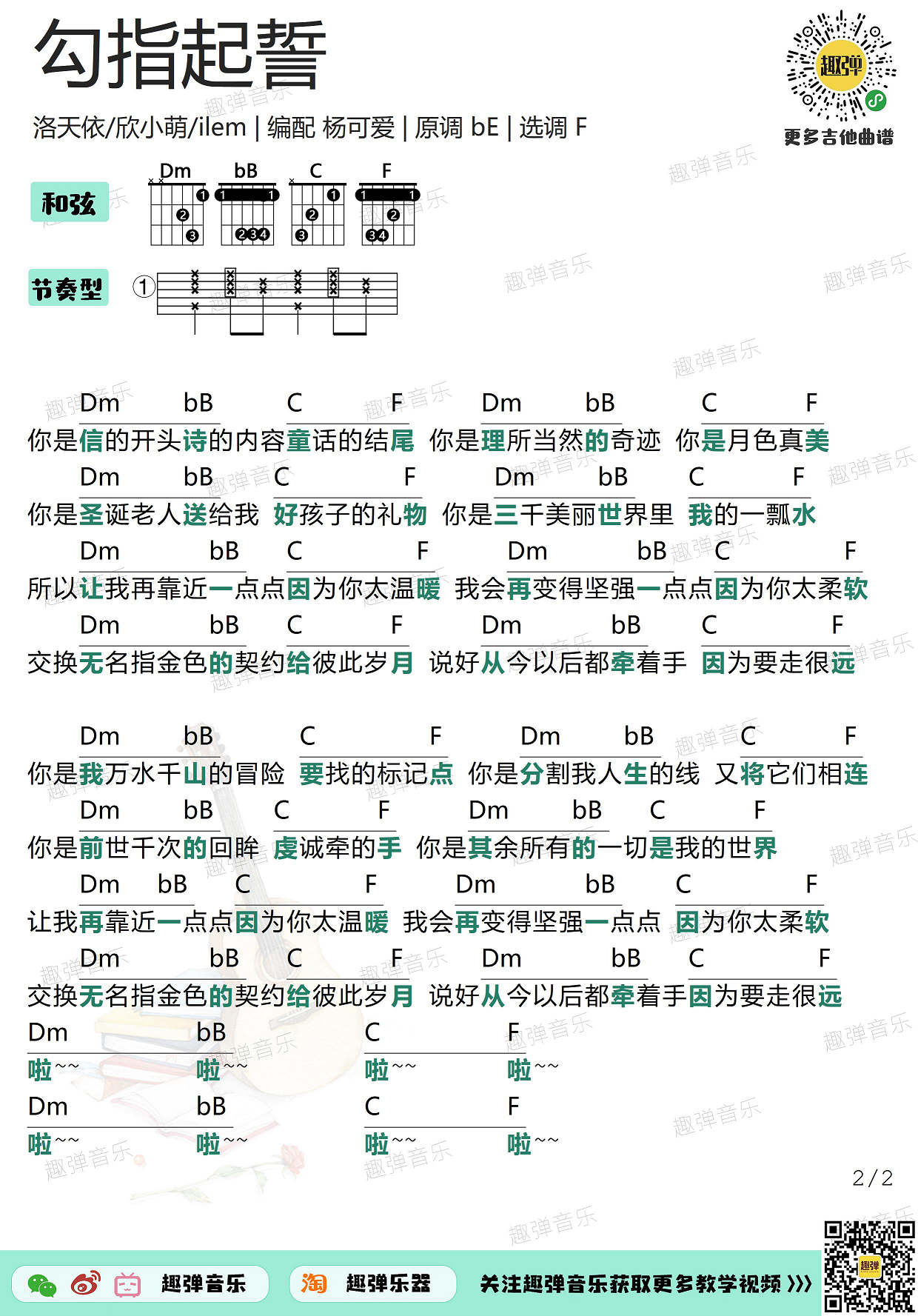 曲谱介绍: B站UP主ilem写给伴侣张老师的表白歌。原调bE调,选调F调,编配来自趣弹吉他。