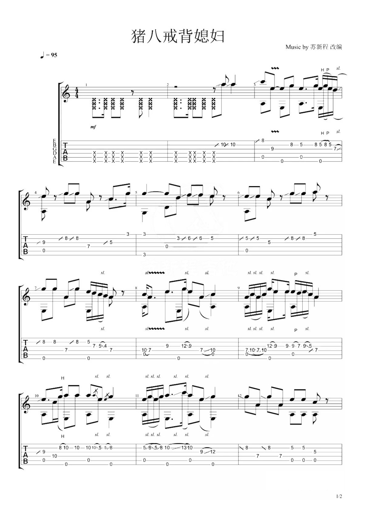 猪八戒背媳妇吉他谱 - 苏新程 - 吉他独奏谱