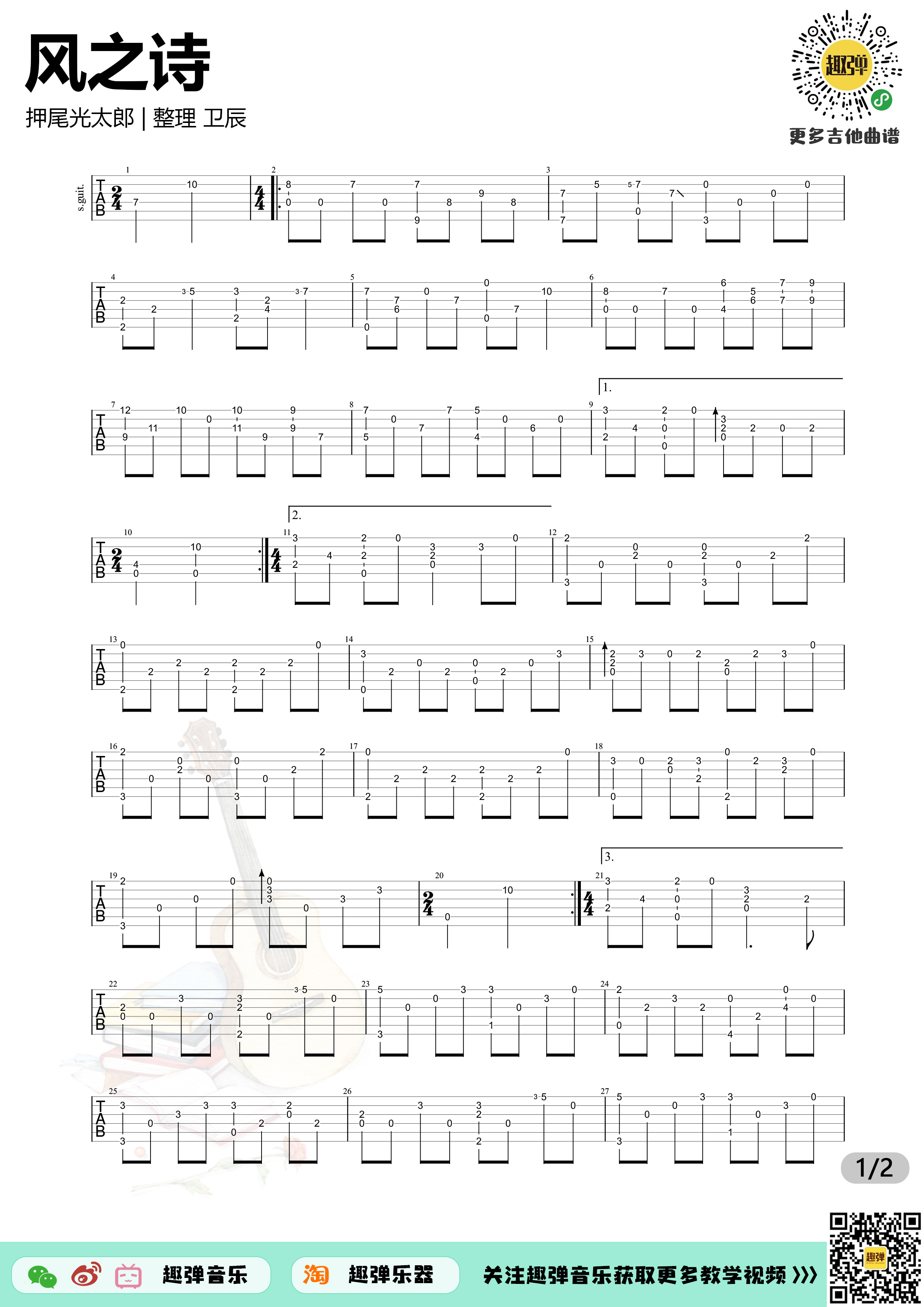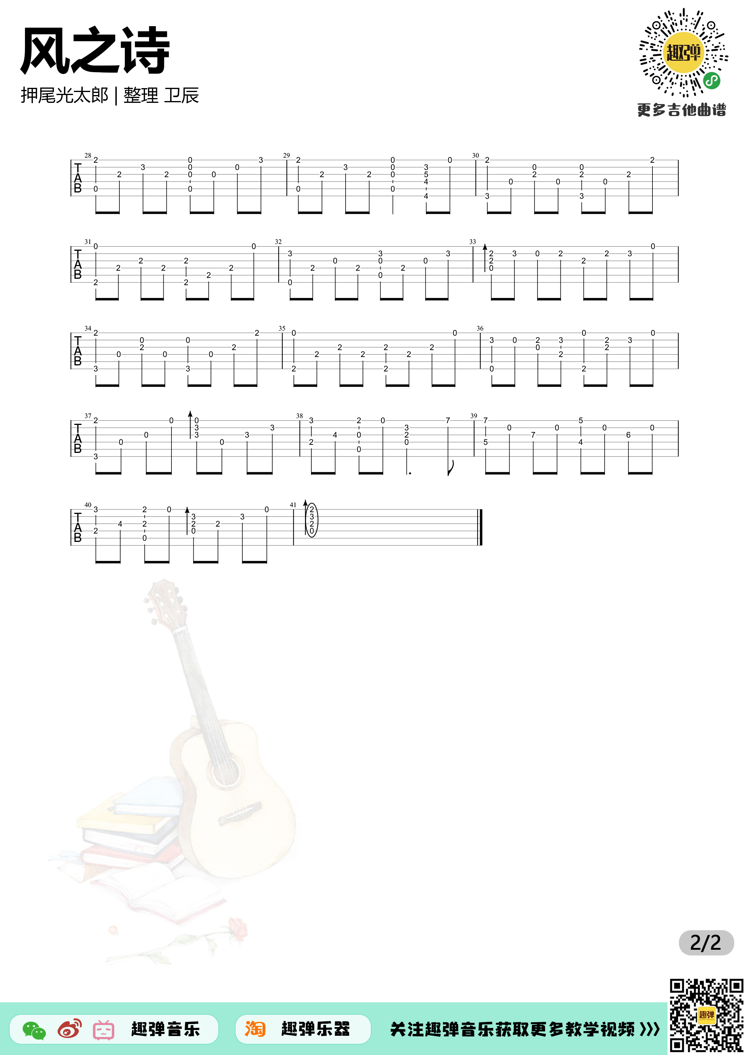 曲谱介绍: 押尾光太郎《风之诗》吉他独奏谱,共有2张高清图谱,免翻页排版设计。