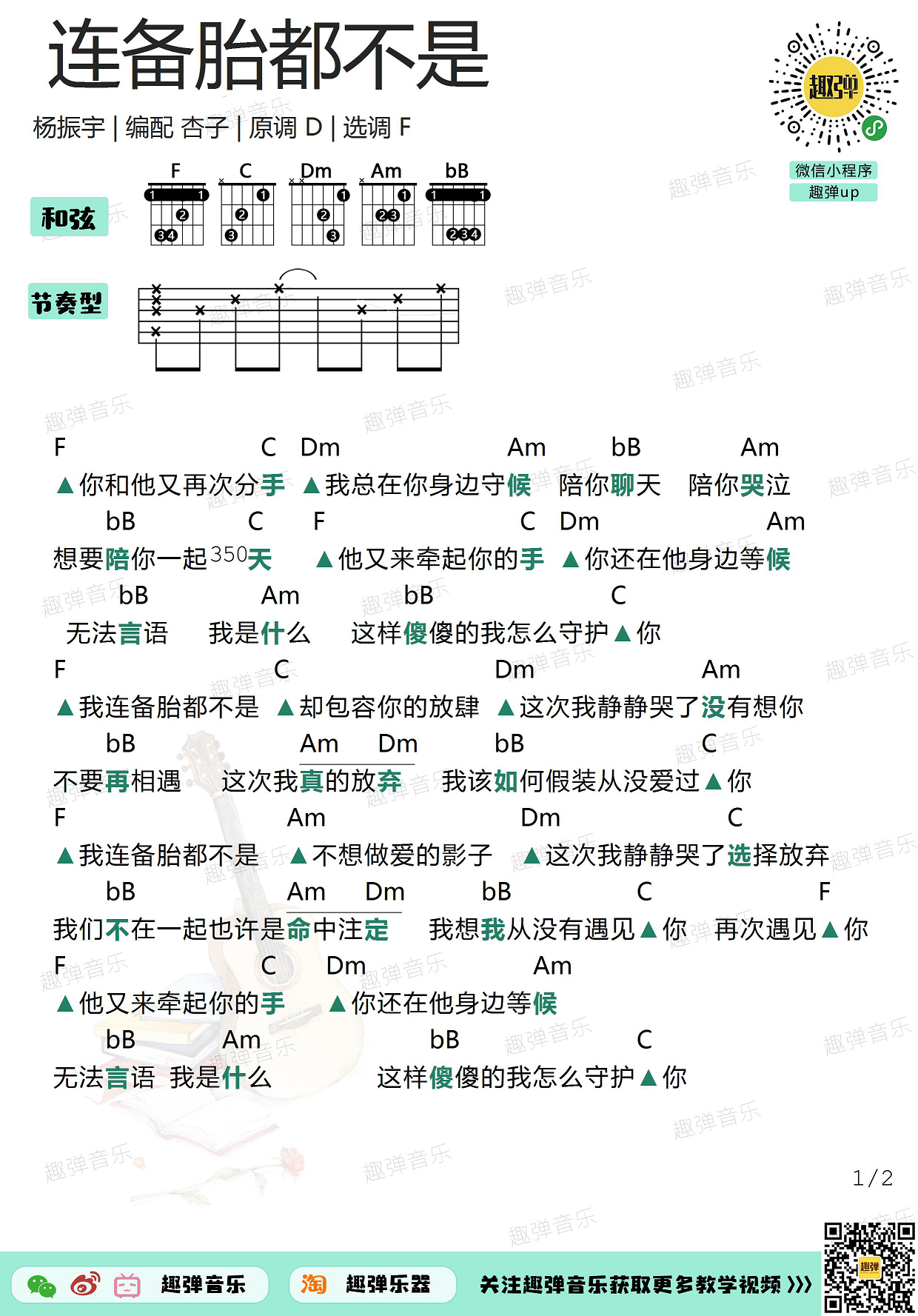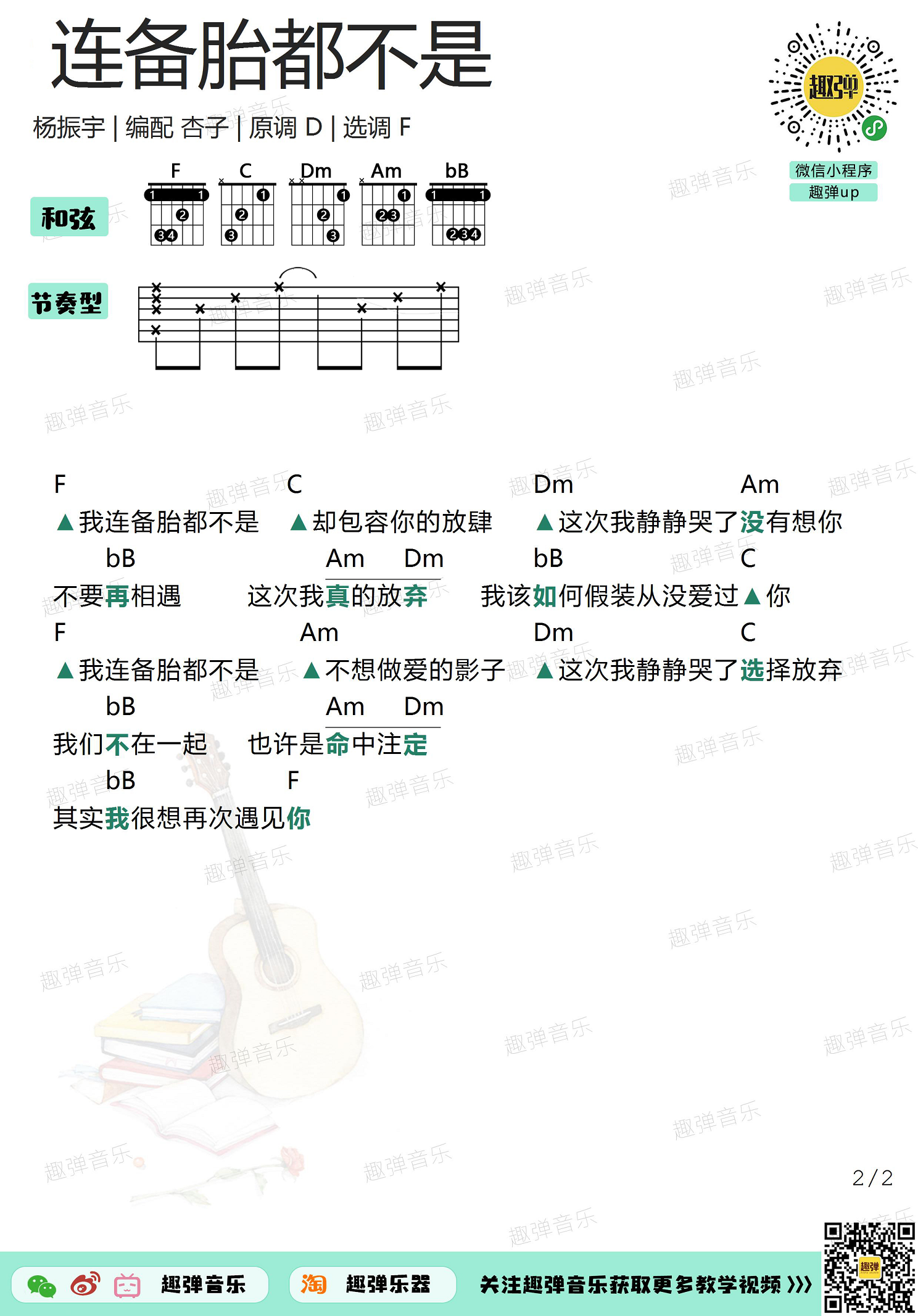 连备胎都不是吉他谱 - 杨振宇 - F调吉他弹唱谱