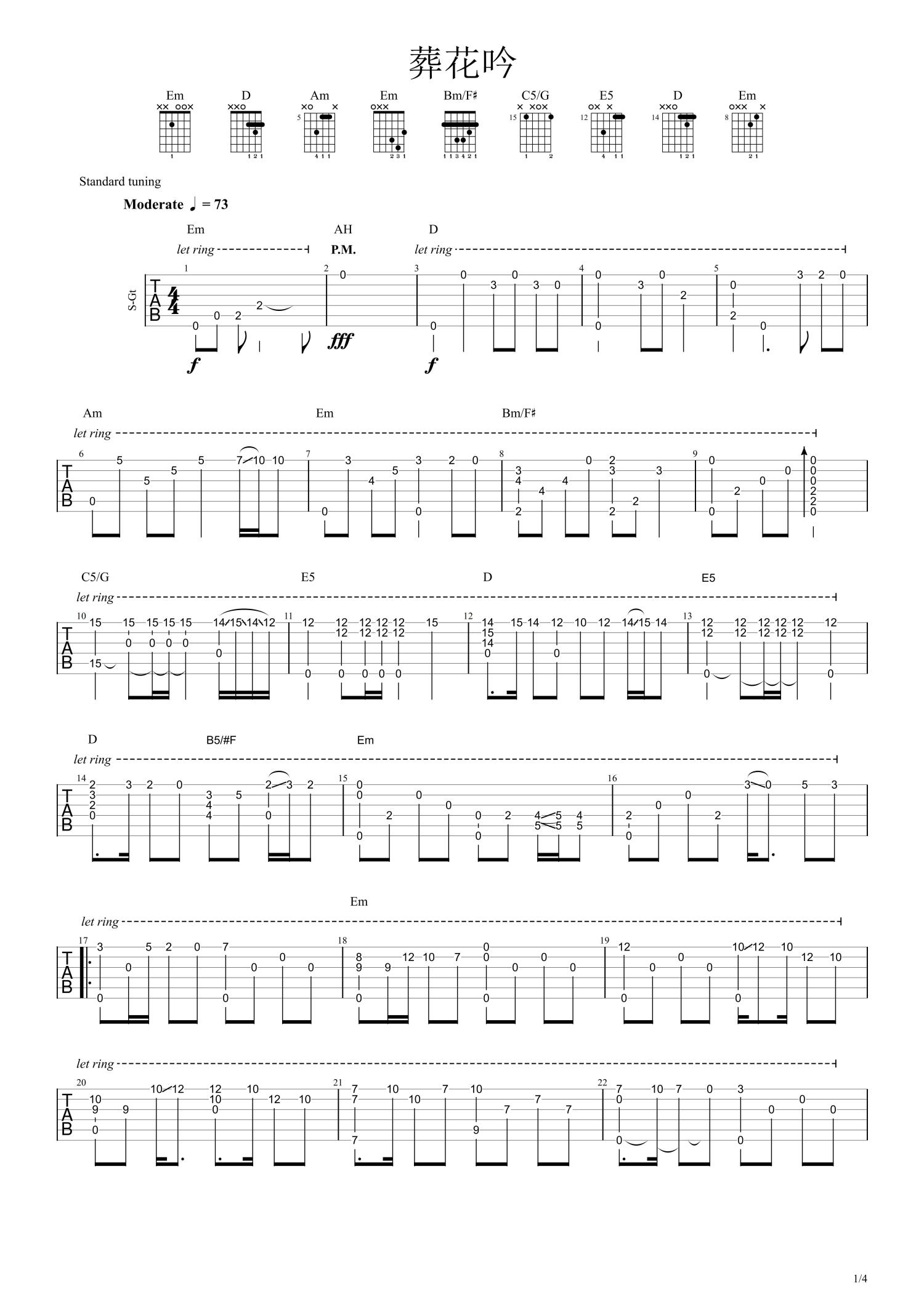 曲谱介绍: 红楼梦《葬花吟》吉他谱_吉他独奏谱_简单版