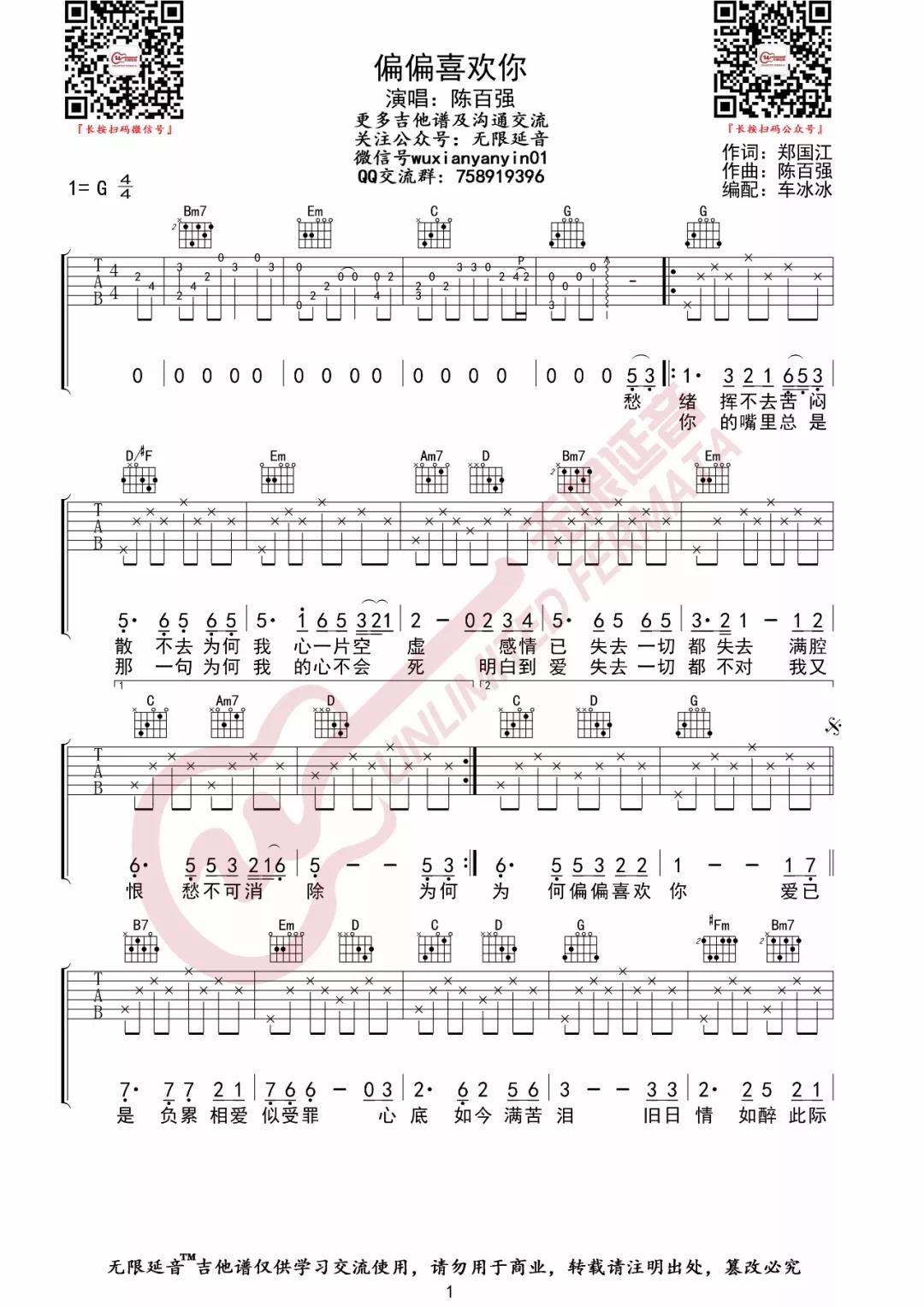 当前位置:琴谱网>吉他弹唱>偏偏喜欢你