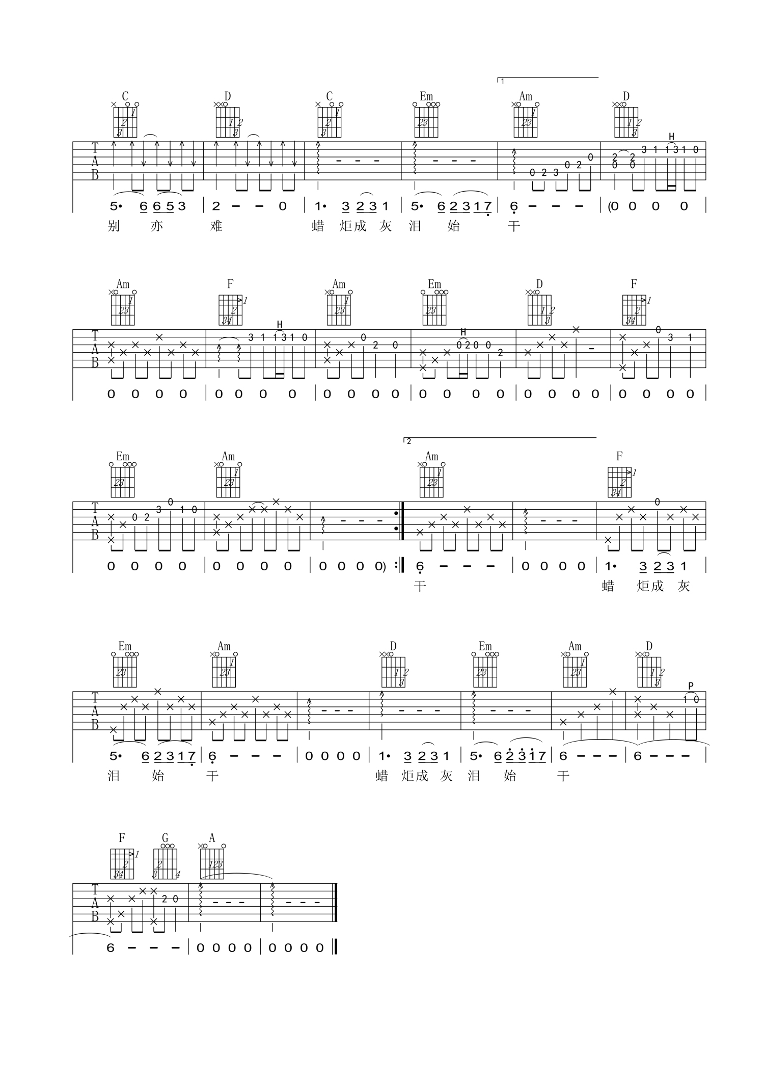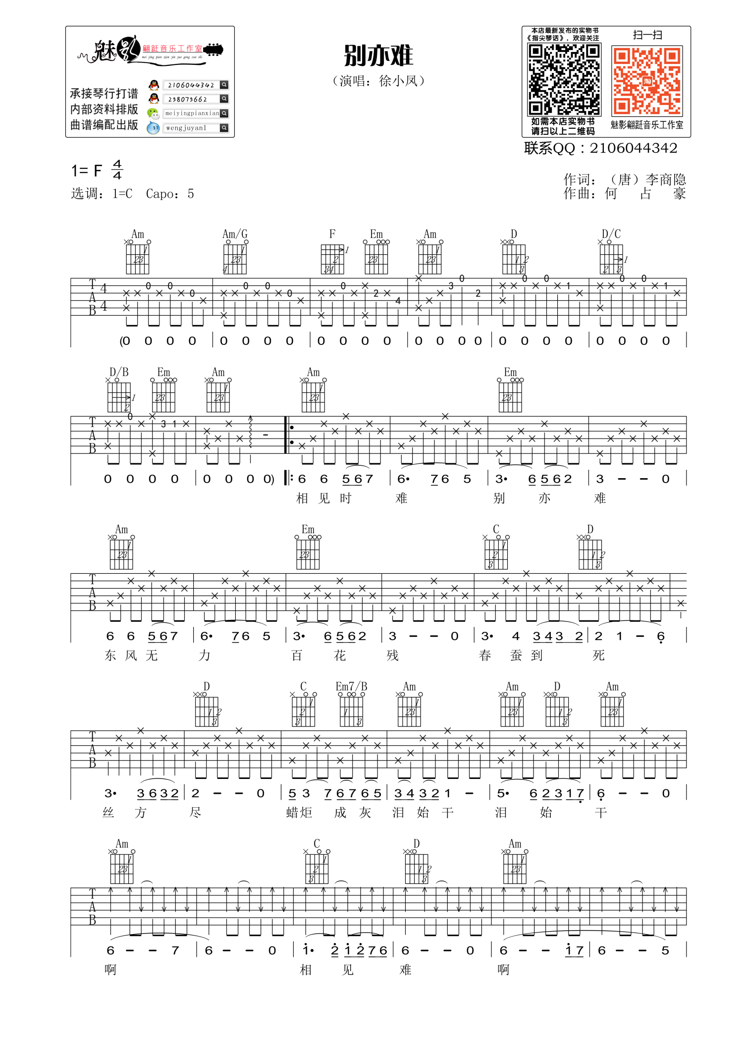 曲谱介绍: 徐小凤《别亦难》吉他谱_C调吉他弹唱谱