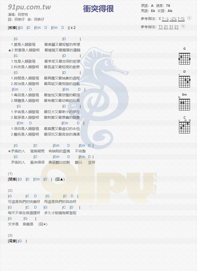 当前位置:琴谱网>吉他弹唱>冲突的很