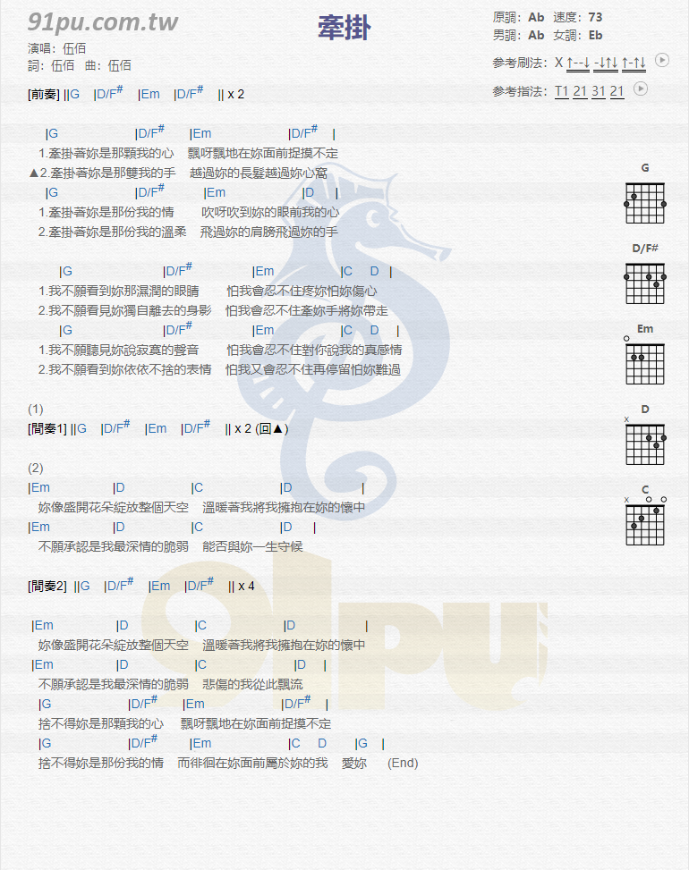 当前位置:琴谱网>吉他弹唱>牵挂