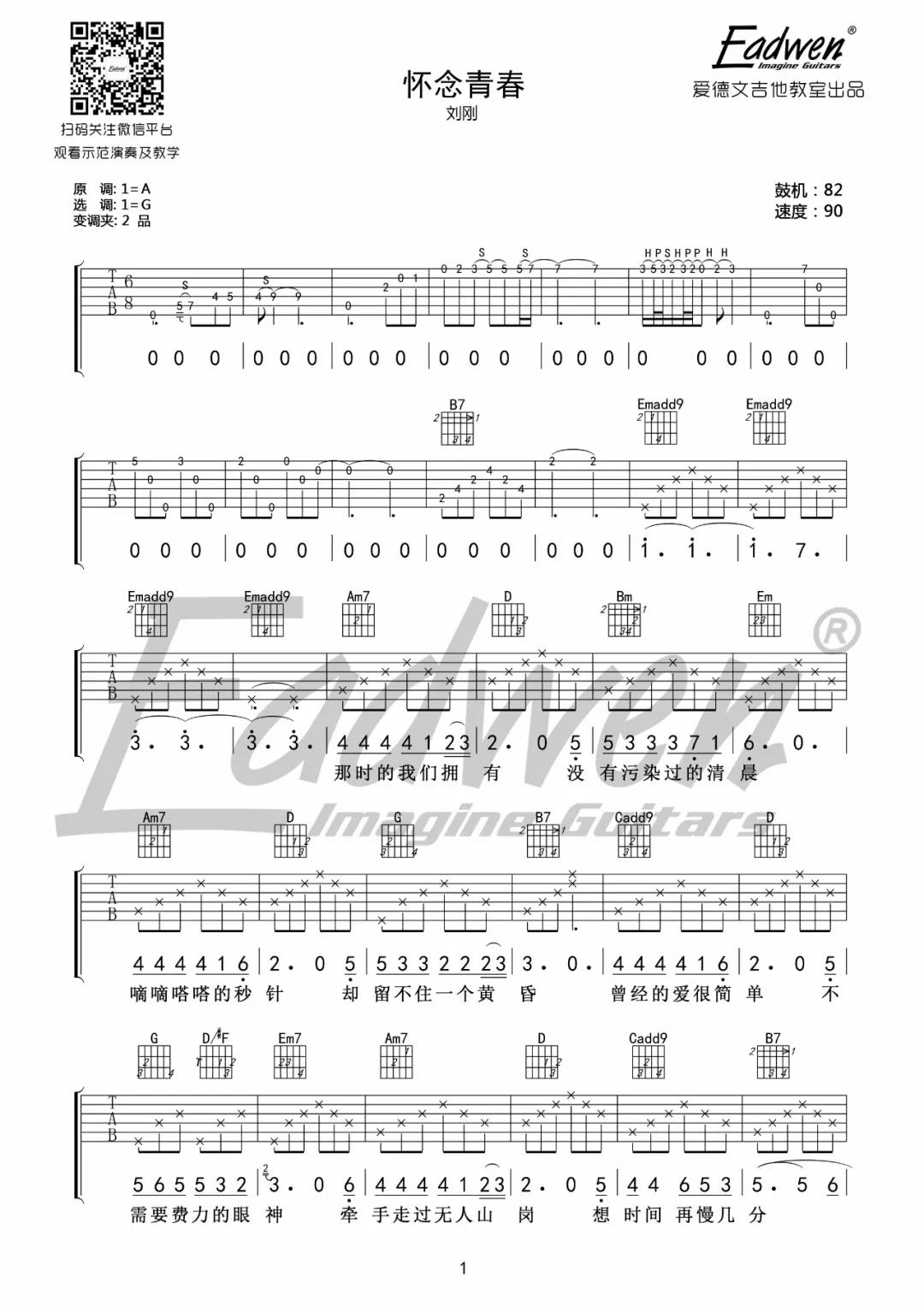 曲谱介绍: 刘刚《怀念青春》吉他弹唱谱,采用G调指法编配,共有2张高清图谱,免翻页排版设计。