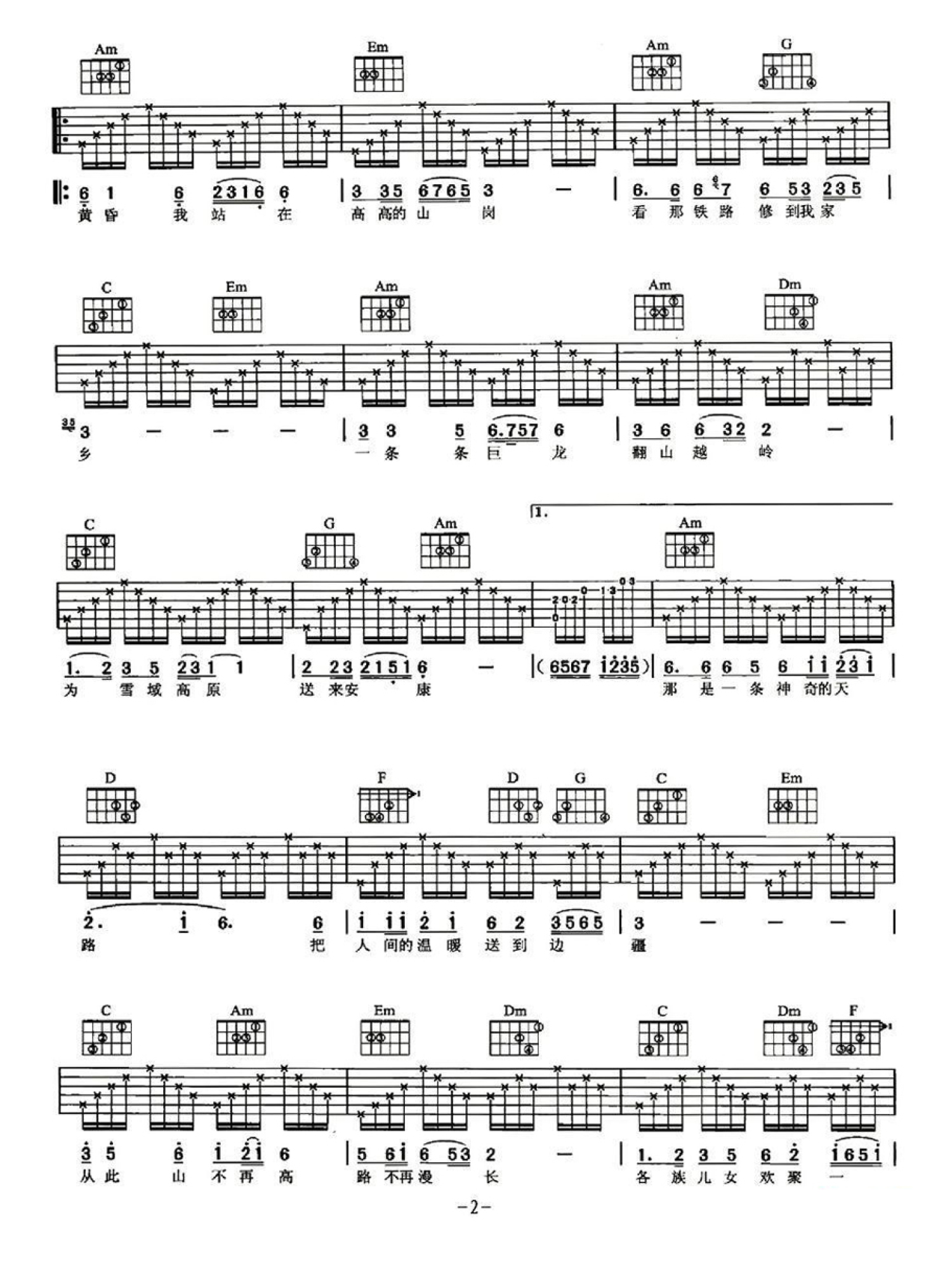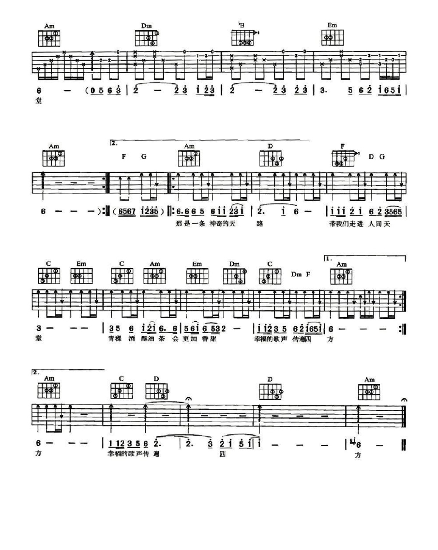 曲谱介绍: 韩红《天路》吉他谱_A调吉他弹唱谱