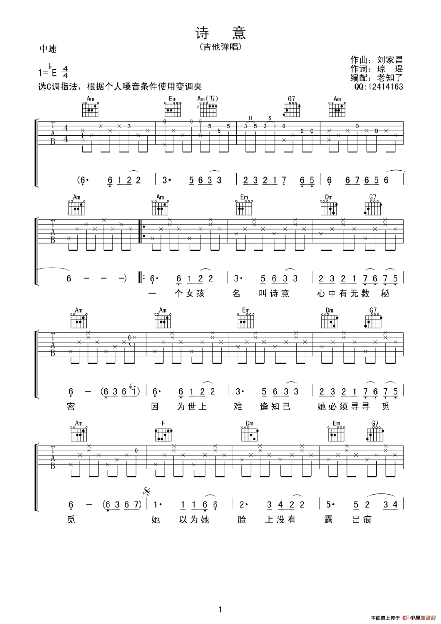 曲谱介绍: 《诗意》吉他谱_C调吉他弹唱谱