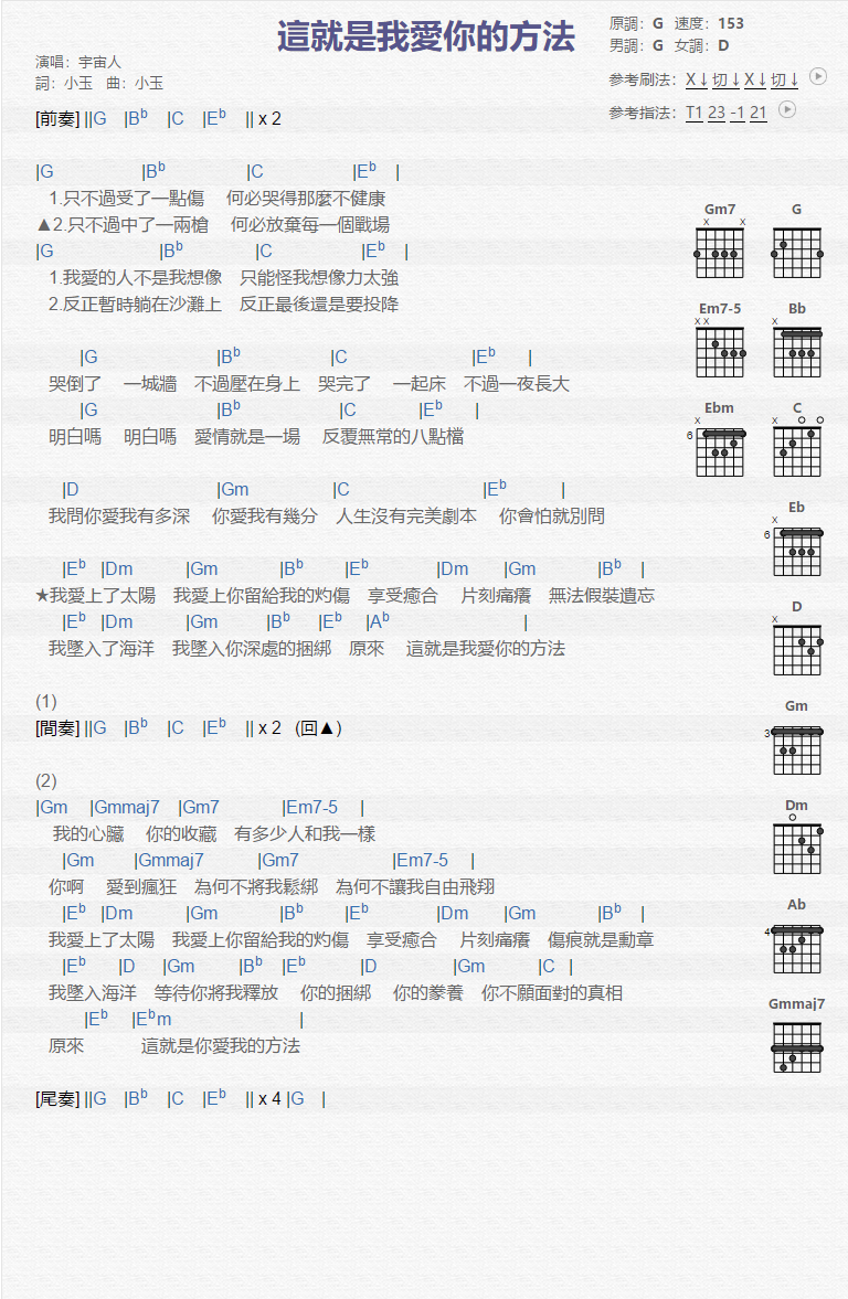 这就是我爱你的方法吉他谱 - 宇宙人 - G调吉他弹唱谱
