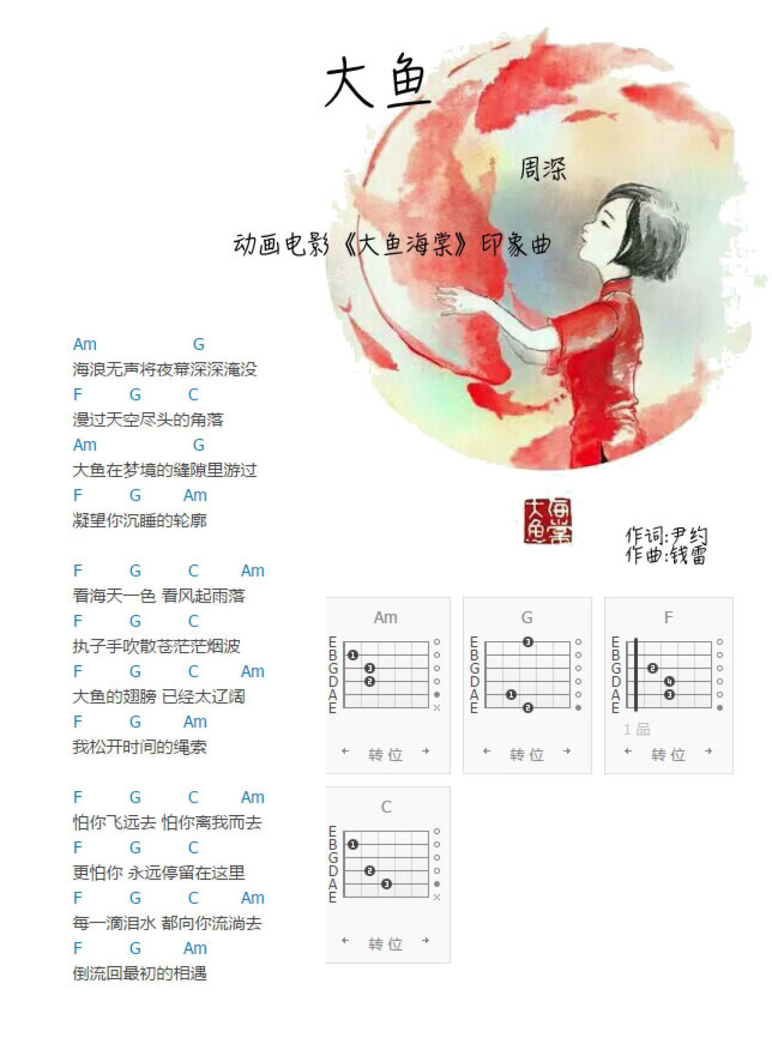 大鱼吉他谱 - 周深 - C调吉他弹唱谱 - 和弦谱