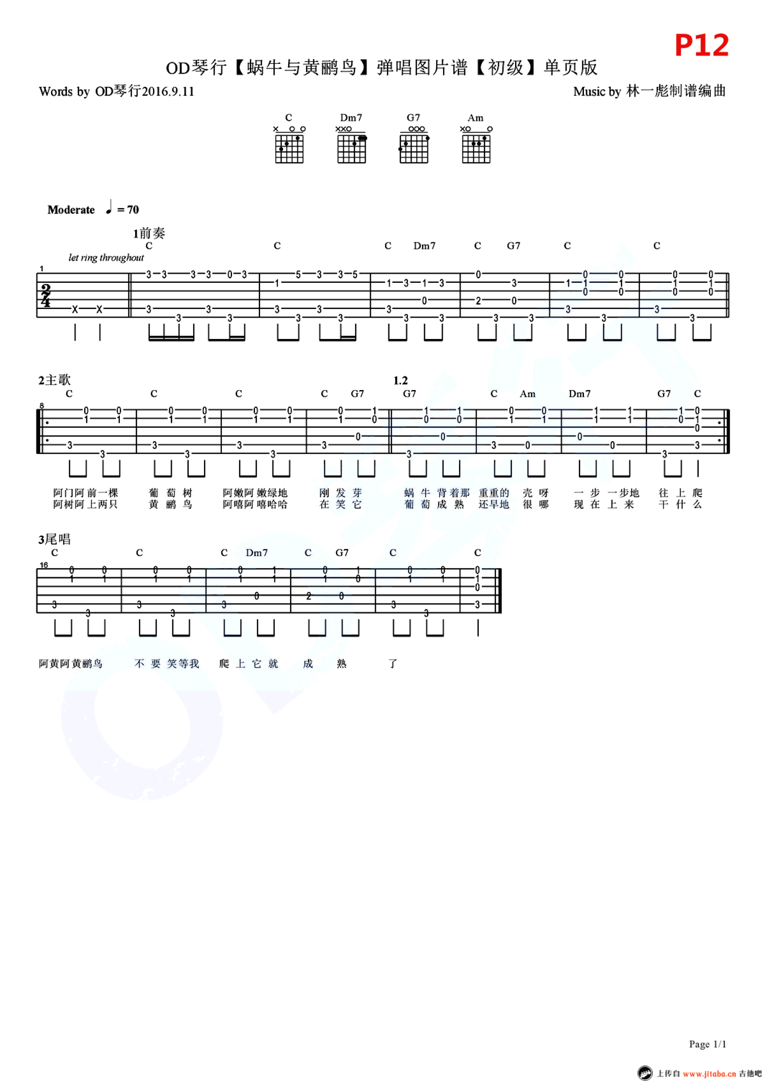 蜗牛与黄鹂鸟吉他谱 - 儿歌吉他谱 - C调吉他弹唱谱