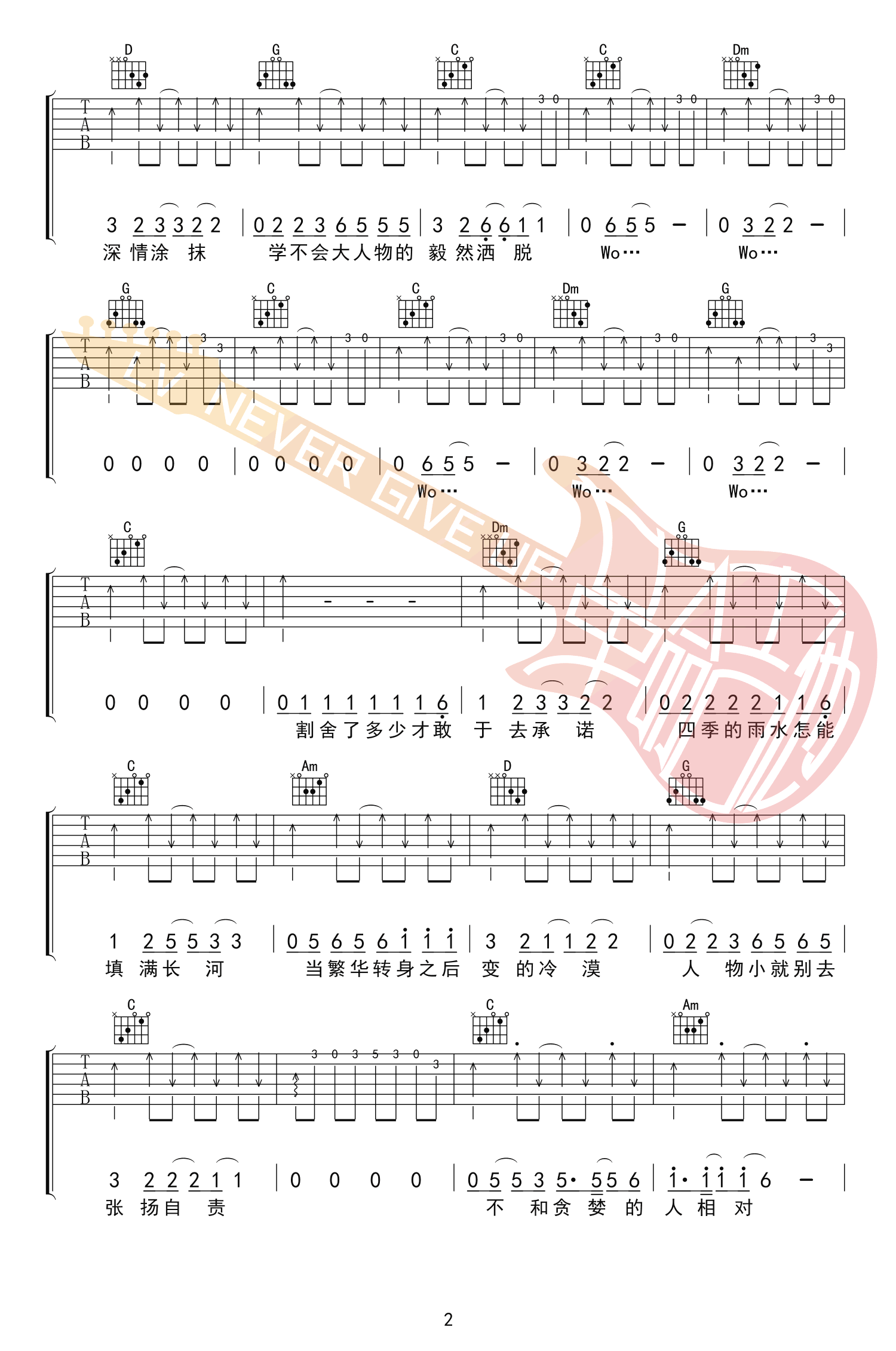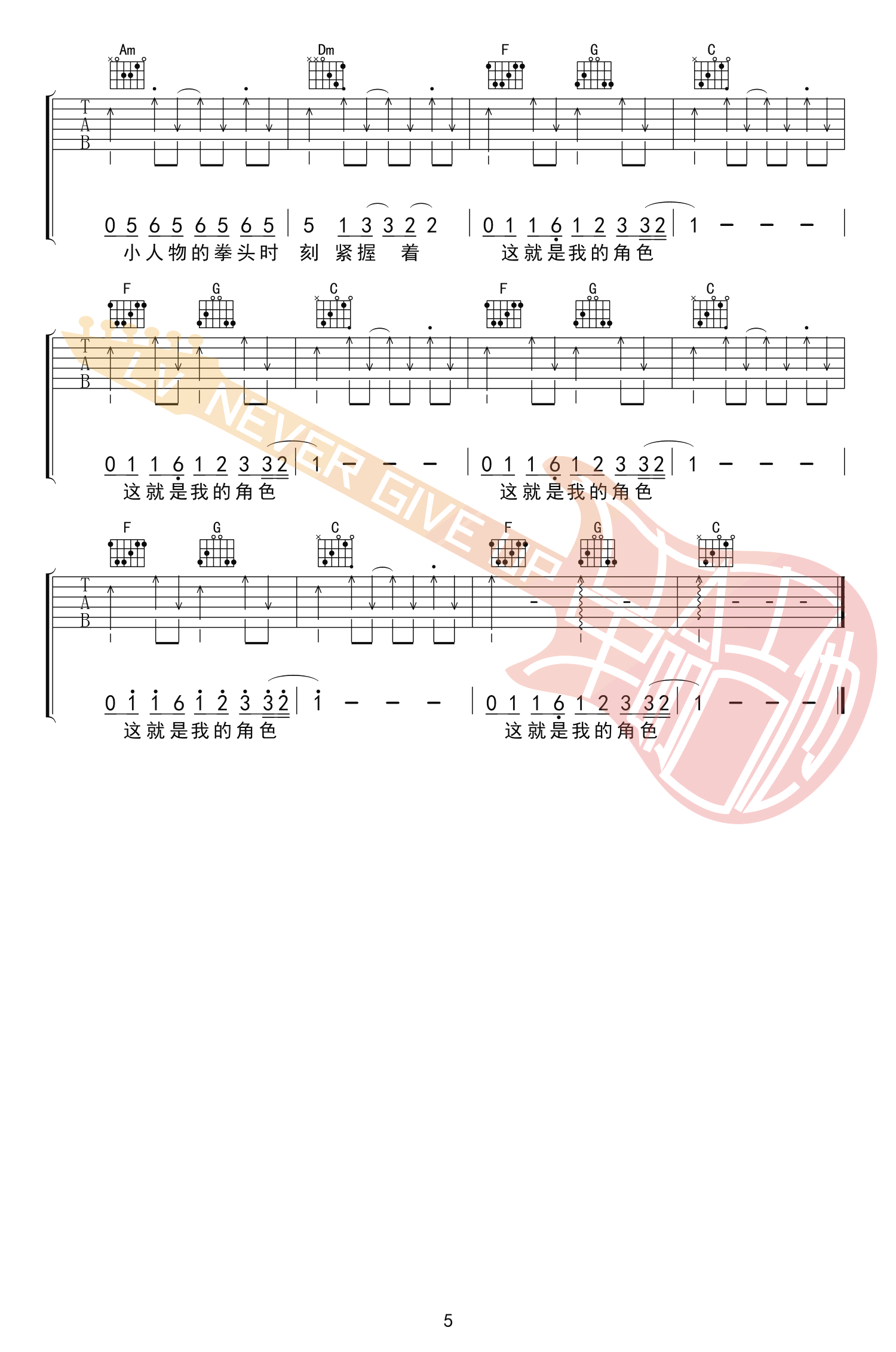 曲谱介绍: 赵雷《小人物》吉他弹唱谱,采用F调指法编配,共有5张高清图谱。