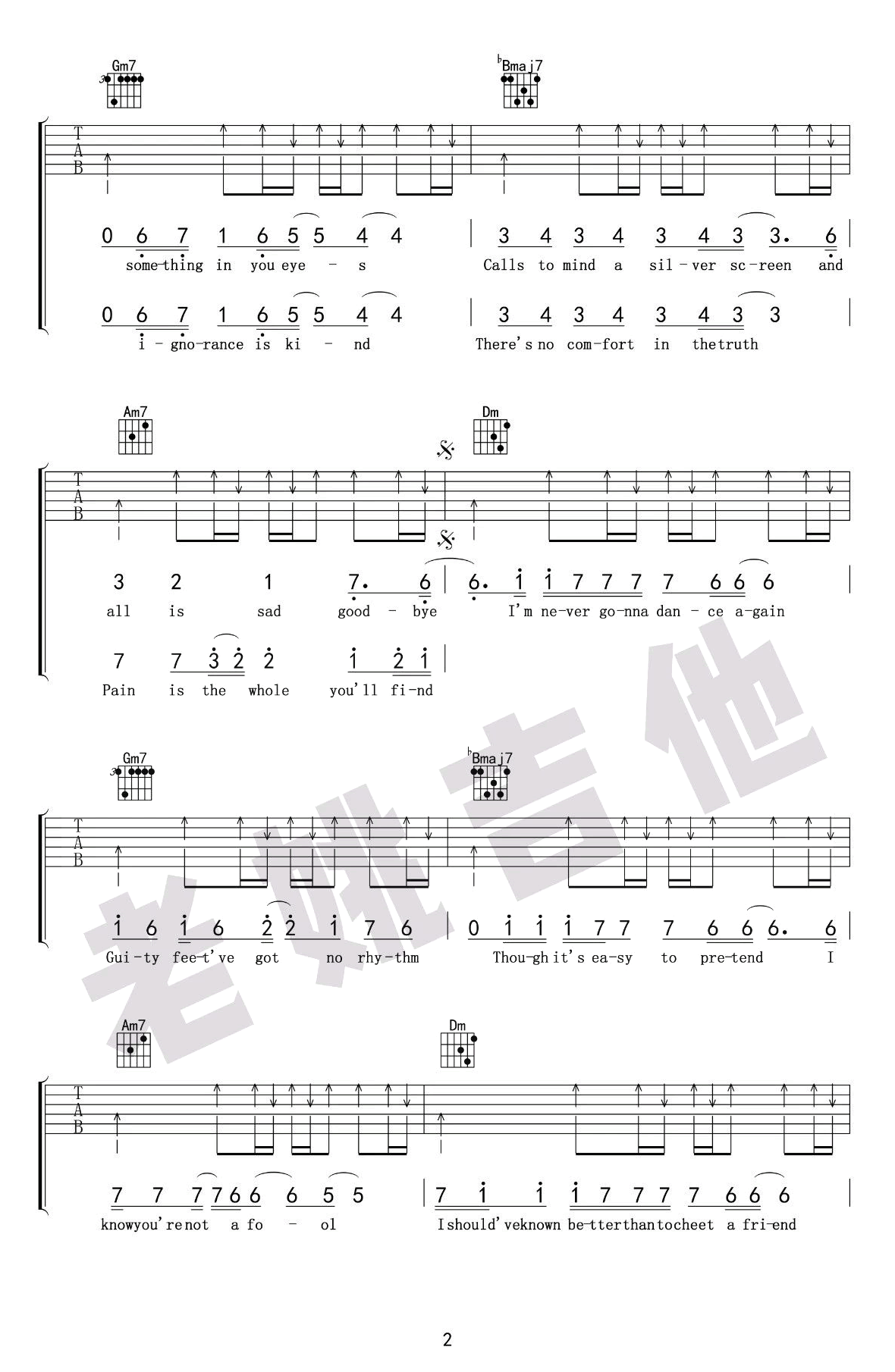 曲谱介绍: Wham《CarelessWhisper》吉他弹唱谱,采用F调指法编配,共有4张高清图谱。