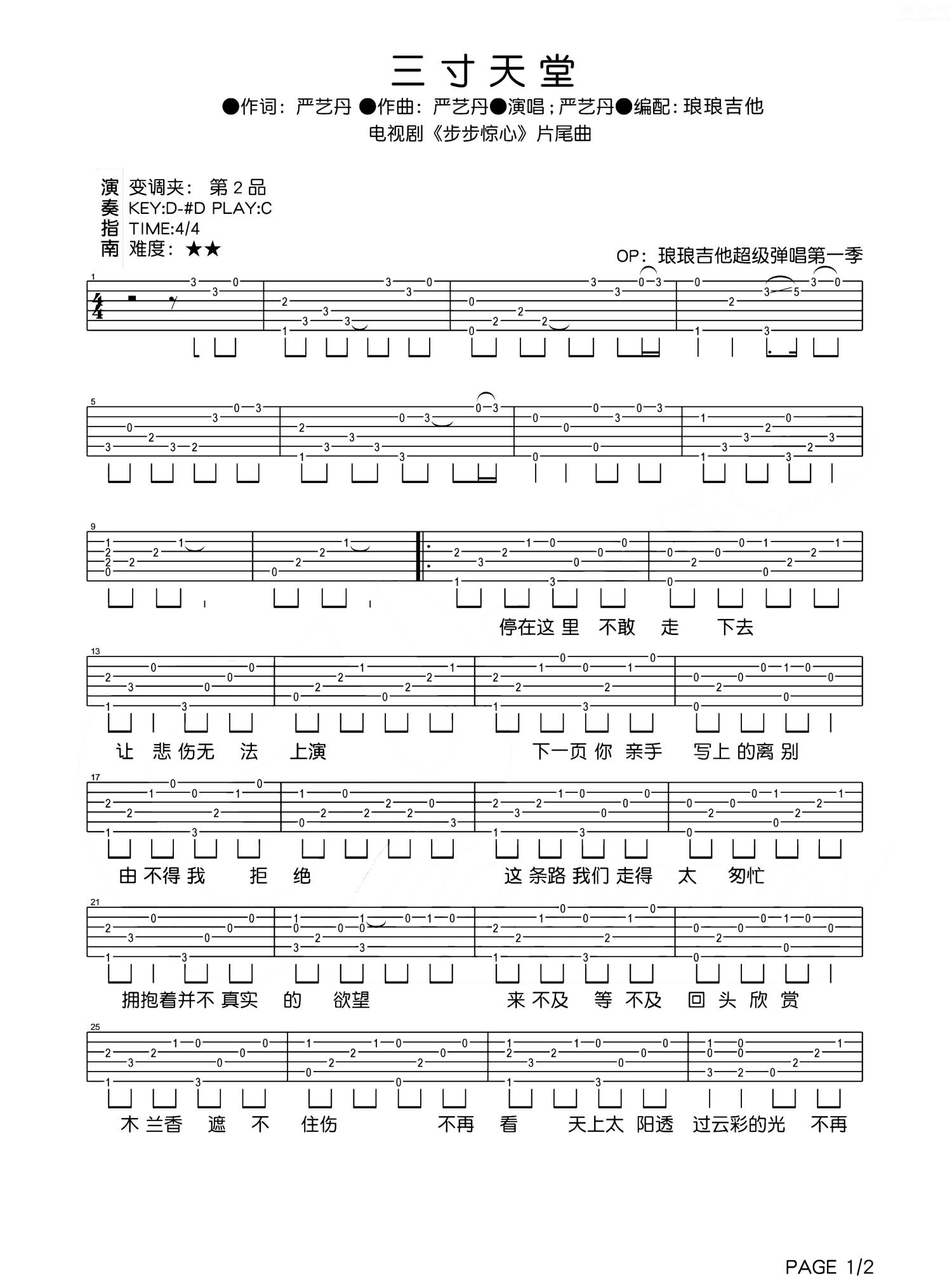 三寸天堂吉他谱 - 严艺丹 - C调吉他弹唱谱