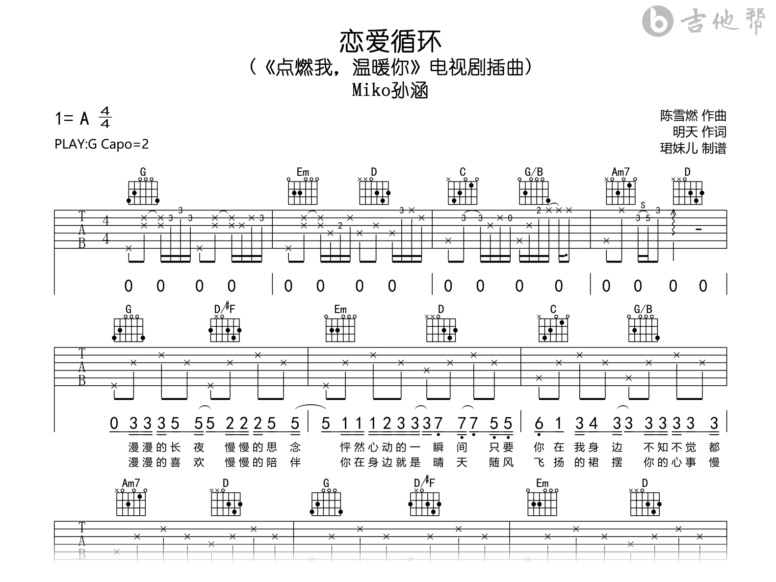 恋爱循环吉他谱 - Miko孙涵 - G调吉他弹唱谱